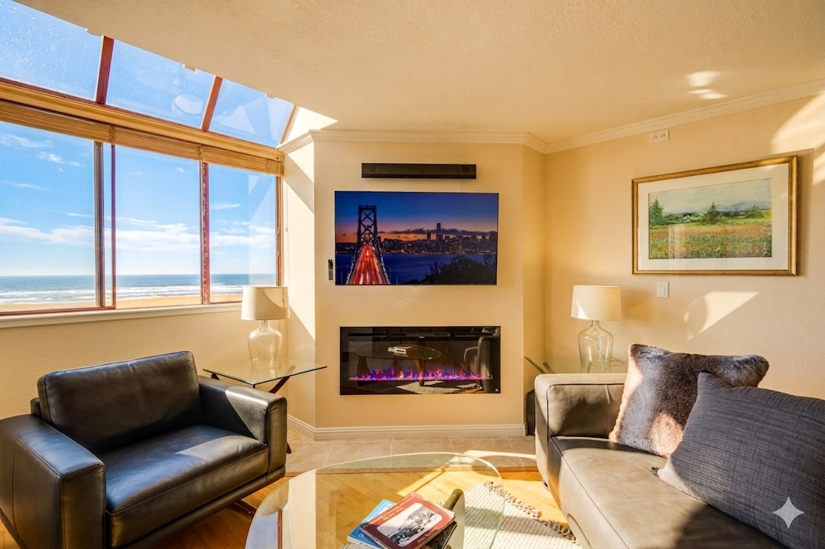Sprostite se v slogu z osupljivim razgledom na ocean in zlatimi sončnimi zahodi v tem prenovljenem obalnem zatočišču 2B1B - le 15 minut od San Francisca in San Francisca. Nahaja se v drugem nadstropju dvostanovanjskega objekta in le nekaj korakov od plaže ter je idealen za opazovanje kitov, deskanje ali mirne sprehode ob morju. Prevelika okna zapolnjujejo prostor z naravno svetlobo in osupljivim razgledom. Uživajte v popolnoma novih pametnih napravah, elegantnem pohištvu, brezplačnem parkirišču pod enoto ter glasovno nadzorovanih lučeh in televizorju za brezhibno in sproščujoče bivanje.