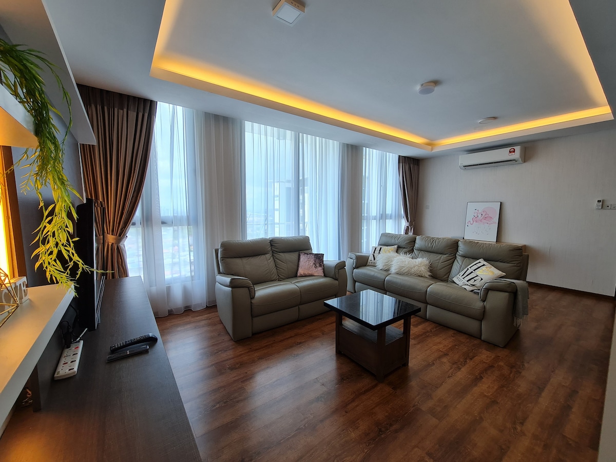 Udobno prostorno 2 spalnici in 1 kopalnica, razkošno stanovanje s pogledom na mesto, ki se nahaja na vrhu največjega nakupovalnega središča Kuching (Viva City Megamall). Samo 10 minut vožnje od mednarodnega letališča Kuching Enostaven dostop do glavnih zanimivosti in znanih restavracij v Kuchingu. - Spring Shopping Mall (3 km) - Top Spot Food Court (5,3 km) - Vodna fronta Kuching (5 km) - Državni muzej Sarawak (5 km) - Malezijski kitajski park prijateljstva (3,5 km)