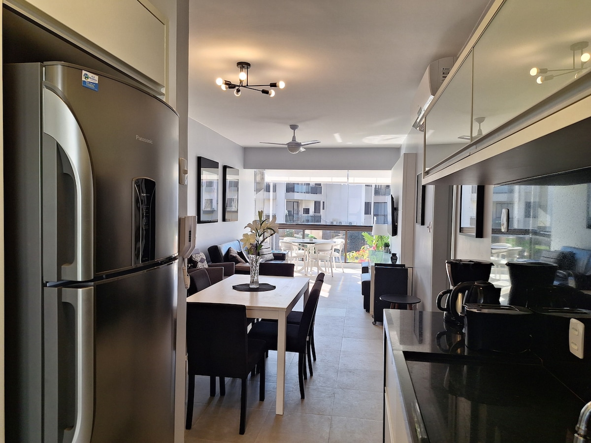 Nova in okrašena garsonjera, le 50 m od mirne plaže Jurerê Tradicional in v bližini očarljivega Canajurê. Idealno za tiste, ki iščejo mir, hkrati pa želijo biti blizu vrveža Jurerê Internacional. Družinsko stanovanje, varno in obdano z naravo — kjer se zbudite ob zvoku ptic in zaključite dan uživanja v sončnem zahodu na pesku. Kompakten in udoben prostor z ekskluzivnim parkirnim mestom.