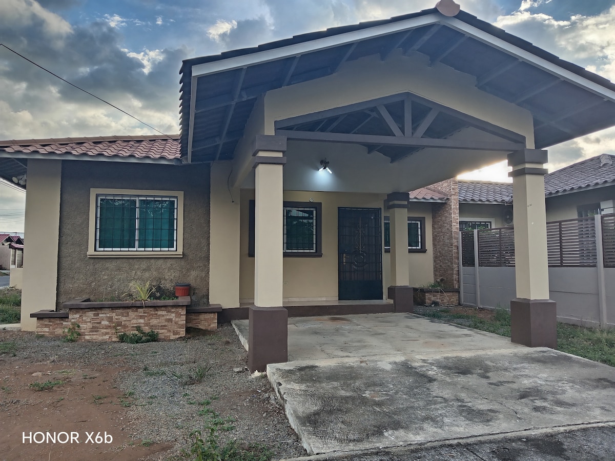 Celotna zasebna hiša, kot nalašč za družine, pare ali popotnike, ki obiščejo Davida in Boquete. Uživajte v varnem, udobnem in popolnoma zasebnem prostoru z vsemi potrebščinami za kratko ali daljše bivanje: hitra WiFi povezava, idealna za delo na daljavo, pametna TV, popolnoma opremljena kuhinja, pralni stroj, zasebno parkirišče in dobrodošli hišni ljubljenčki. Lokacija je strateška: • 10 minut od Davida • 20 minut od Boqueta • V bližini supermarketov, restavracij in glavnih cest.
