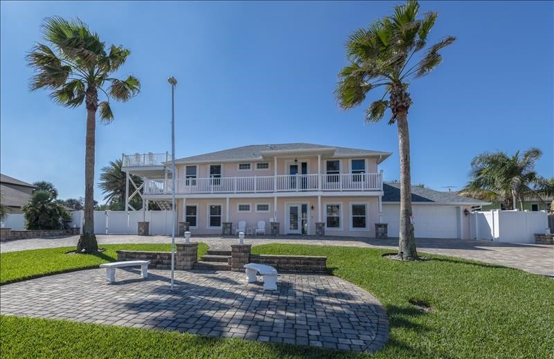 Beachfront!! Beachfront!! Beachfront!! Amazing Views!! Amazing Views!! Direct Oceanfront 6 Bedrooms, 4 Bathrooms, 2 Full Kitchens Courtyard with Firepit, Bar-B-Que Grill & Griddle Area with outdoor dining. Beachside Downstairs has Covered Outdoor Patio Beachside Upstairs has Covered Outdoor Balcony Close to Daytona, shopping, dining, and fun 2 Washer/ 2 Dryers (one upstairs and one downstairs) Game Room upstairs