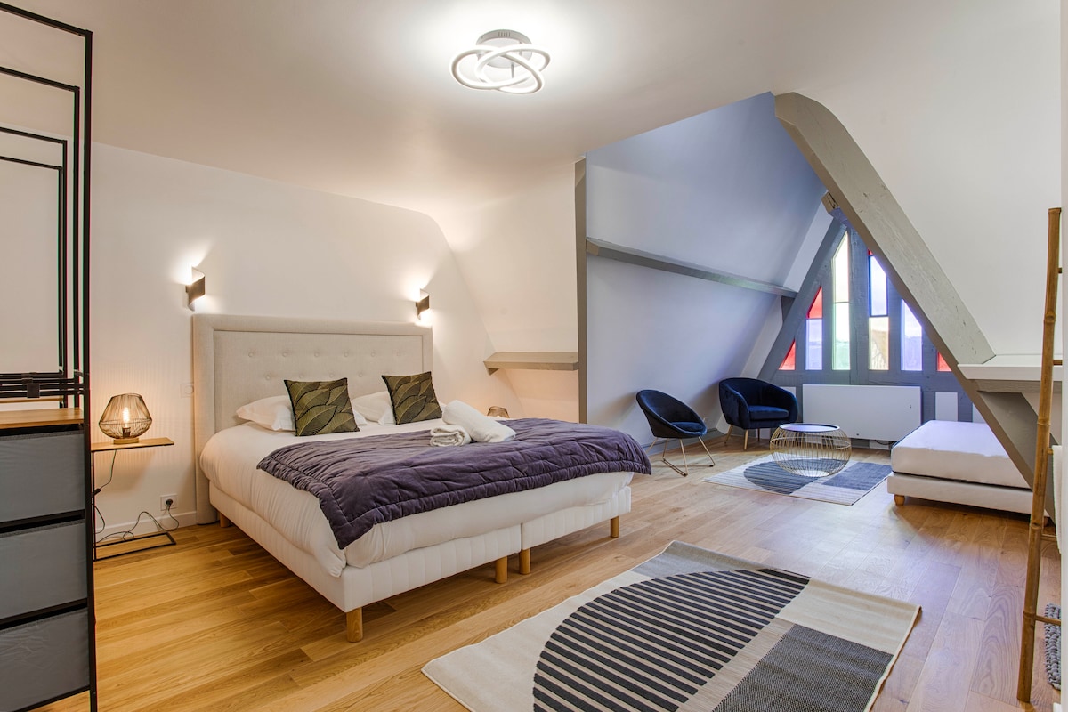 Masažna kad in tišina za sprostitev 🥰 Sanjate o oddihu? 🙏🏻 Potujte v to starinsko suito v osrčju mesta Caen, ki je idealna za romantičen trenutek ali za delo. Blizu vseh trgovin, restavracij, barov, kina, trgovin... ✨ Imeli boste vse, kar potrebujete za prijetno bivanje. 😇