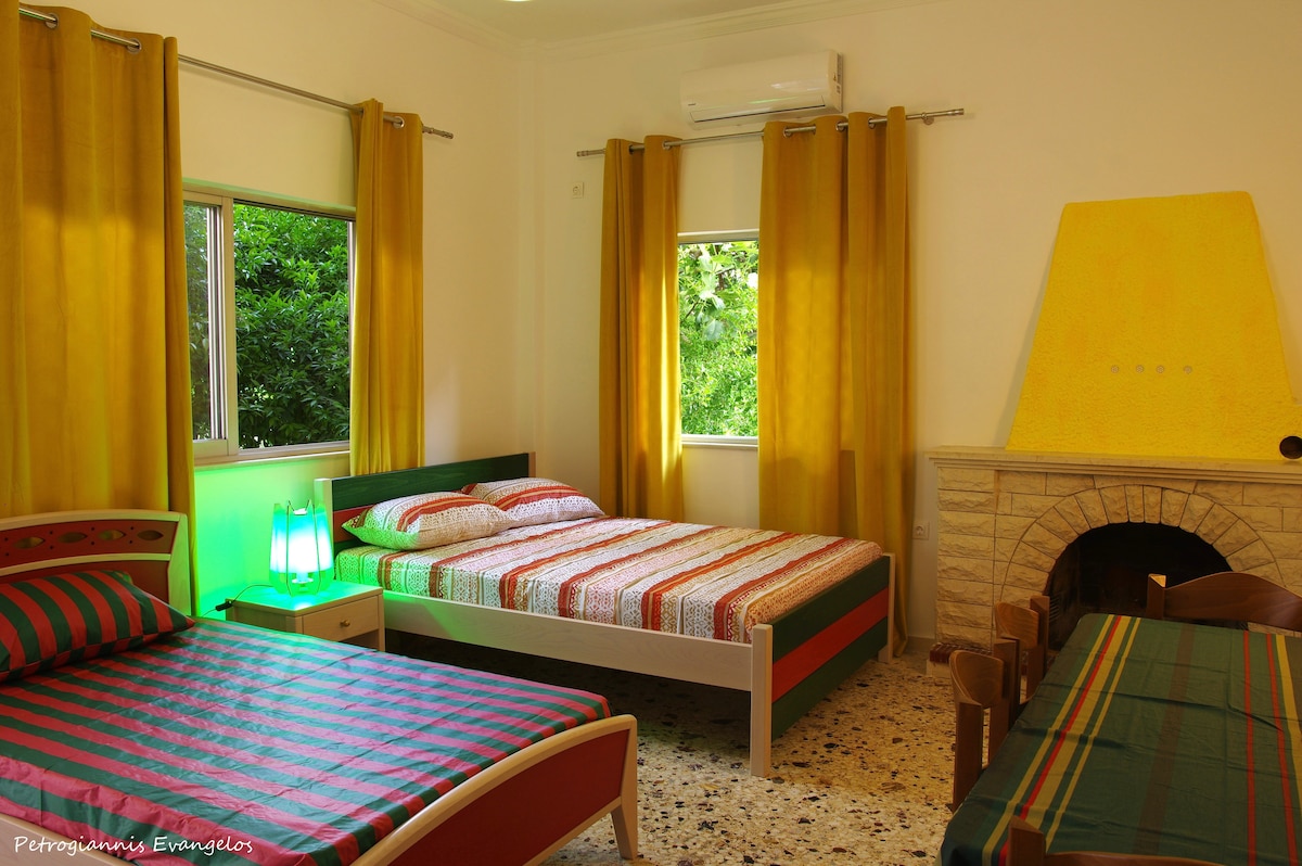 Peš oddaljenost od vasi, 1000 m2 skupni vrt, prekrasen razgled na morje in sončni zahod. Lepa 2 nadstropni hiša, 40 m2. Tradicionalni trg v pelionskem slogu. Najbližja plaža je 7 min. Samo prijatelji so bili tu do zdaj in to jim je všeč!