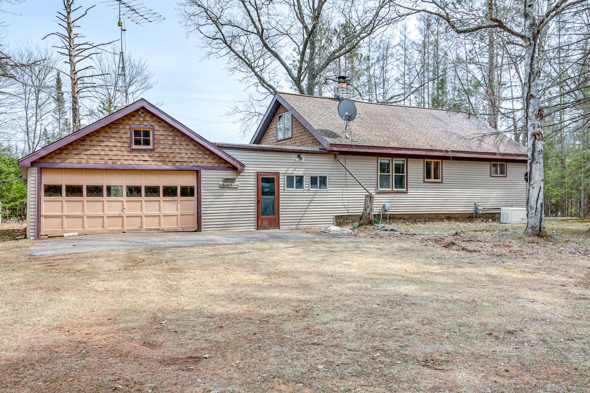 Udobje, kot ste ga vajeni doma. Zunanja terasa z žarom in ognjiščem, le nekaj minut stran od zgodovinskega središča reke Eagle, le nekaj minut stran od verige jezera Eagle River. Namestitev se nahaja na poti za motorne sani/terenska vozila. Dovolj prostora za parkiranje vozil/prikolic/čolnov in vse ostalo, kar se odločite. Čudovita okolica na 2,5 hektarja gozdnatega zemljišča. Popoln kraj za počitek in počitek. Odlična hiša za družinske počitnice, fantovski konec tedna ali dekliški večer.