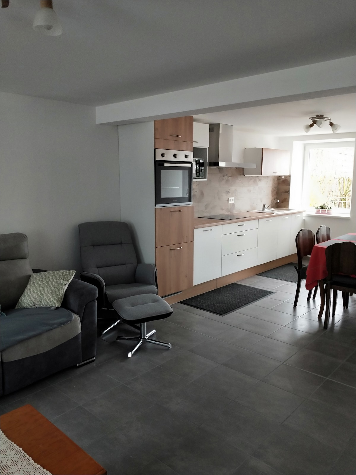 Toplo stanovanje v velikosti 37 m2 z individualnim in zunanjim vhodom v pritličju hiše. Sestavljena je iz kuhinjske niše z mikrovalovno pečico, hladilnikom/zamrzovalnikom, kuhalno ploščo, pečico Ena spalnica z veliko zakonsko posteljo 180 x 200, televizorjem in predalnikom. Kopalnica s prho, WC in pralni stroj. Svetla dnevna soba s televizijo , Wi-Fi-jem in stransko mizico za jedilnico. Raztegljiv kavč (140 x 190 cm) nudi izjemno udobno posteljo za 2 osebi. Brisače in posteljnina so na voljo.