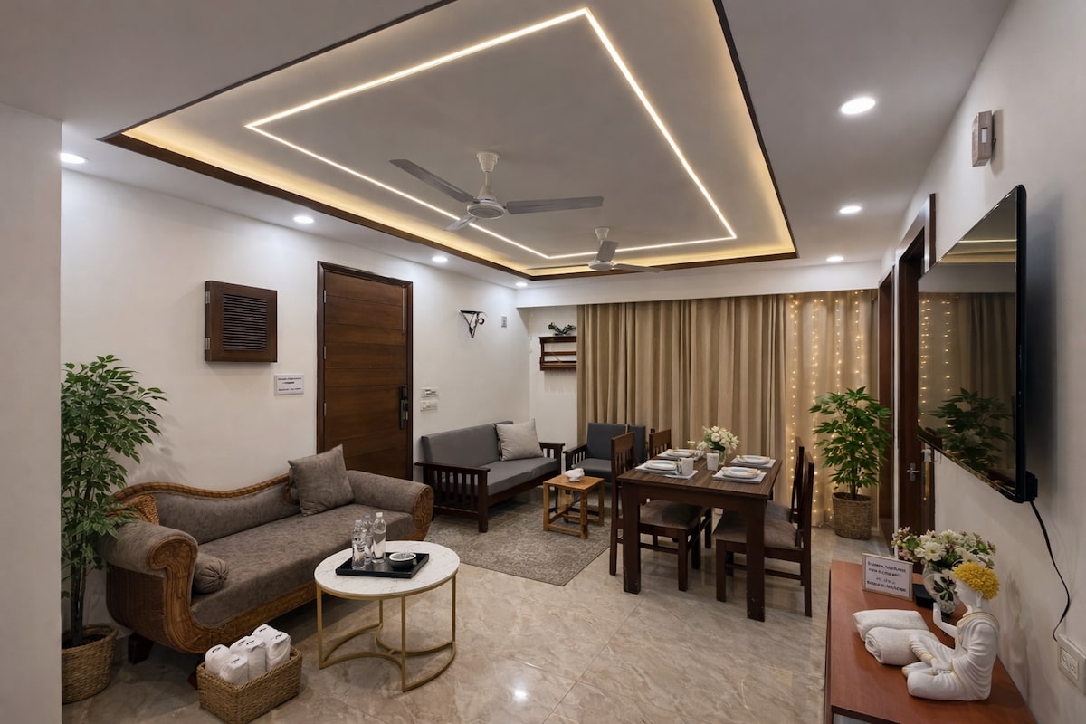 Sprostite se v tem razkošnem stanovanju 2BHK v prvem nadstropju v Dehradunu, le nekaj korakov od gozda Malsi in le 3 minute od ceste Rajpur. Premišljeno zasnovan prenočišče z elegantnim dekorjem, toplo osvetlitvijo in vrhunskim udobjem je kot nalašč za pare, prijatelje, družine ali poslovna potovanja. Uživajte v mirnem zelenem vzdušju, v bližini pa so najboljše mestne kavarne in znamenitosti.