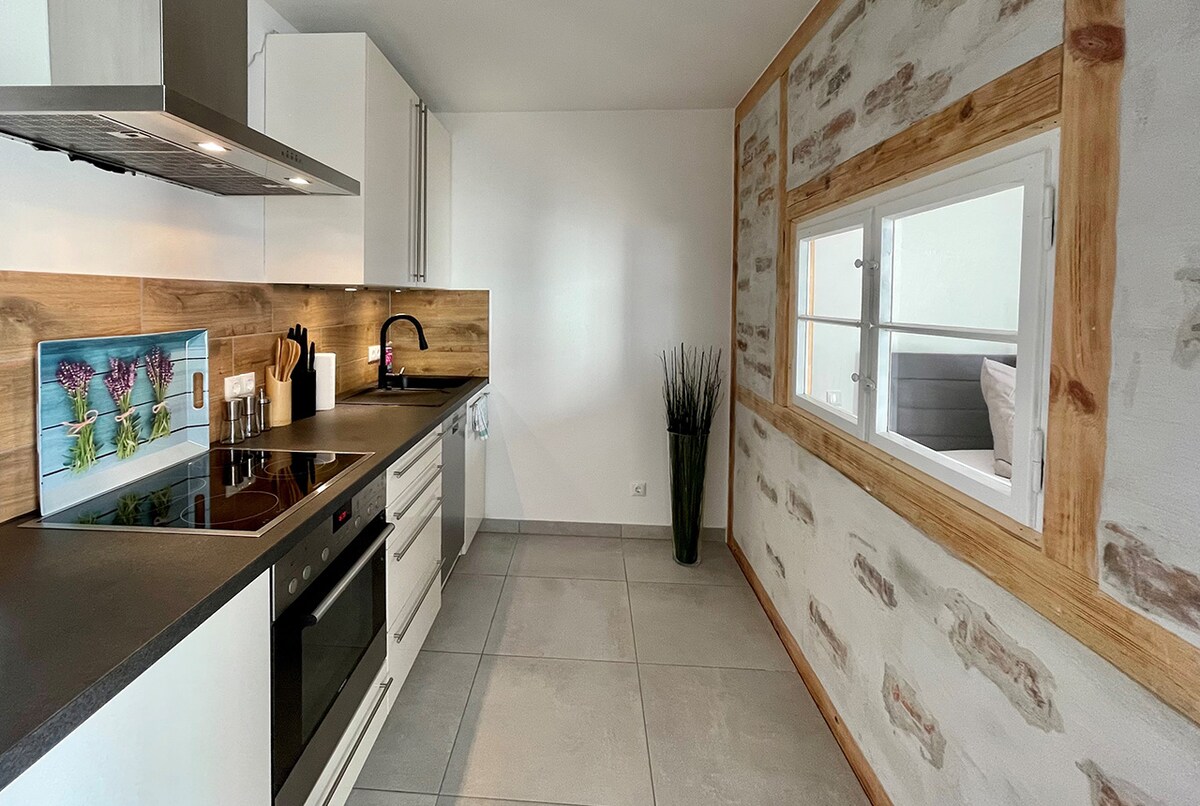Stanovanje s površino 40 m² se nahaja na mirni, idilični lokaciji na našem tristranskem dvorišču. Ko stopite iz stanovanja, ste takoj na terasi, ki pripada vašemu stanovanju. Obe postelji sta široki 1 m in dolgi 2 m, en raztegljiv kavč je velikosti 2 × 2 m in je zelo udoben kot tretja postelja. V 15 minutah se lahko sprehodite skozi vinograde in prispete do gradu Seußlitzer Schloß. Kolesarska pot ob Labi je od nas oddaljena le 400 m. Sprostite se v naravnem bazenu Goltzscha. Odlično. Parkirno mesto in 2 kolesi sta brezplačni.