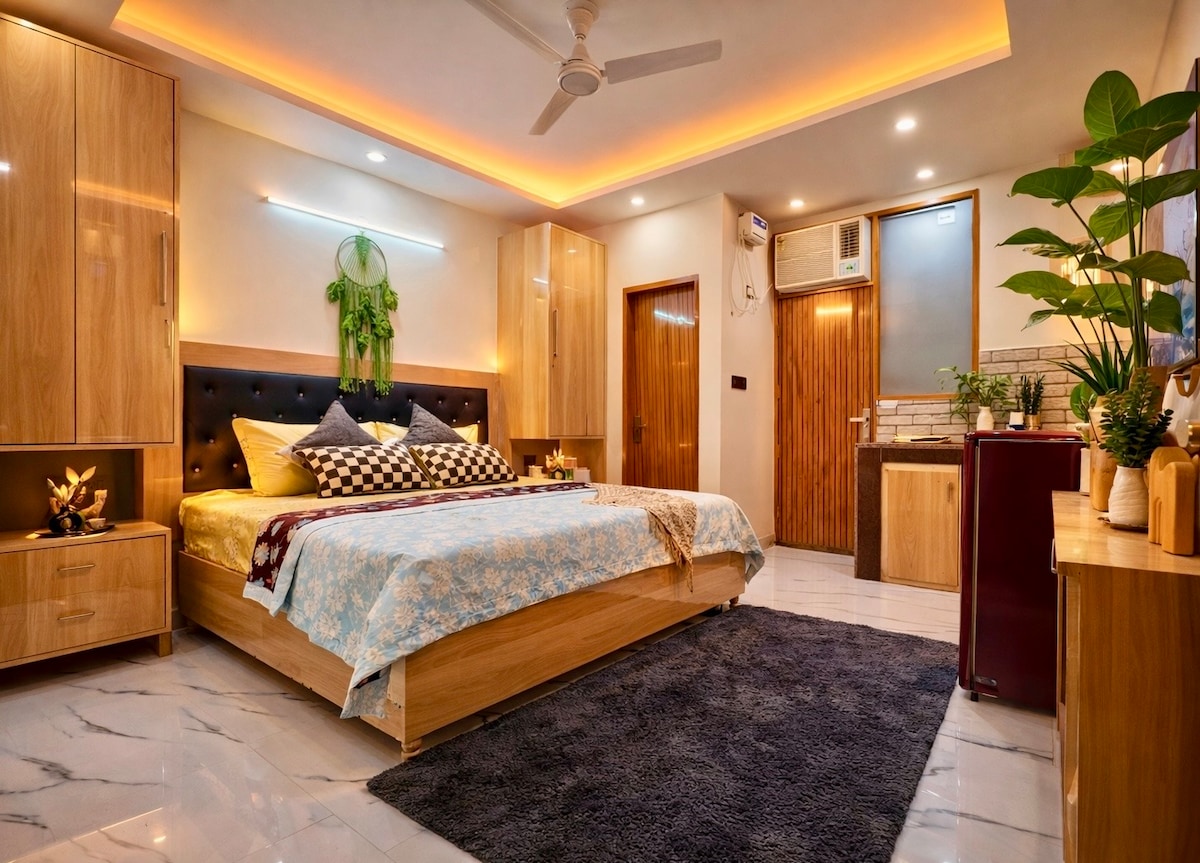 Sodobno, razkošno stanovanje v osrčju Južnega Delhija z ogromno teraso in pogledom na park, barom na prostem in pergolo. Hiša ima veliko opreme, kot je navedeno -65-palčni televizor z vsemi storitvami pretočnega predvajanja. - Popolnoma opremljena kuhinja z OTG, pomivalnim strojem in čistilnikom vode - Čistilnik zraka. - Zajtrk na zahtevo – Domači obroki so na voljo za simbolično plačilo. - dobro osvetljeno, prostorno,popolnoma klimatizirano stanovanje. Izkušeni pri sprejemanju gostov iz tujine. 2 spalnici, za 4 do 5 gostov.