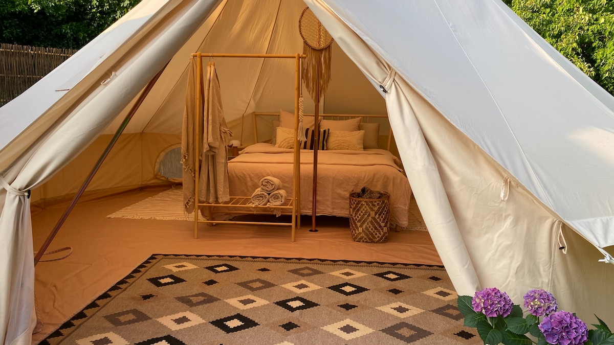 Glamping-telt i naturskøn have