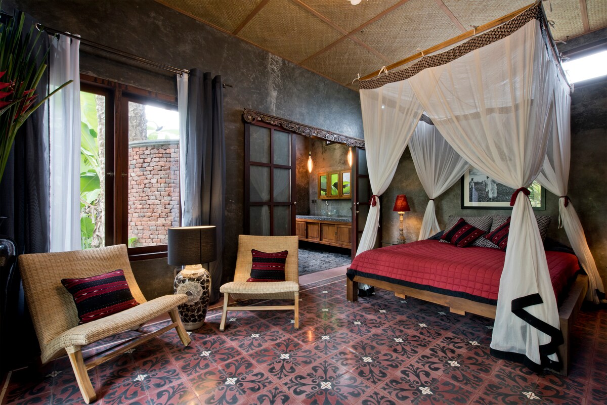 Bivajte pri nas v Bukit Sariju, majhni stanovanjski skupnosti s skupno 8 posameznih sobami, ki se nahaja v osrčju Penestanana. Naše predelano stanovanje »Alexis«, poimenovano po prejšnjem lastniku in oblikovalcu Alexisu Dornierju, vam bo ponudilo nepozabno bivanje. Zbudite se v udobni zaprti postelji in opazujte sončni vzhod za goro Agung Sprostite se v mehurčku v kopalni kadi ali pa uživajte v cvrketu ptic, medtem ko se sproščate v odprtem bivalnem prostoru. V drugem nadstropju imate popolno zasebnost