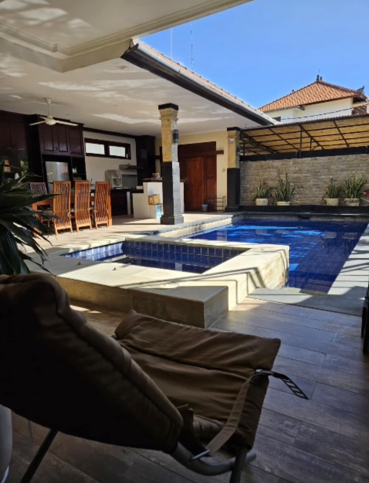 udobna enosobna vrstna hiša z zasebnim bazenom, ki se nahaja v mirni ulici v Legianu. Idealno za pare ali majhne družine. Legian Beach in Double Six Beach sta oddaljena le 10 minut vožnje s skuterjem. Pojdite na kratek sprehod do Jln Dewi Sri, kjer je na tone kavarn, restavracij, supermarketov in trgovin. Zelo enostaven dostop do Seminyaka in Kute! Če boste bivali več kot 7 noči, vam bomo omogočili enkratni brezplačen prevoz z letališča , na voljo pa imamo tudi prevoz s skuterjem in oglede