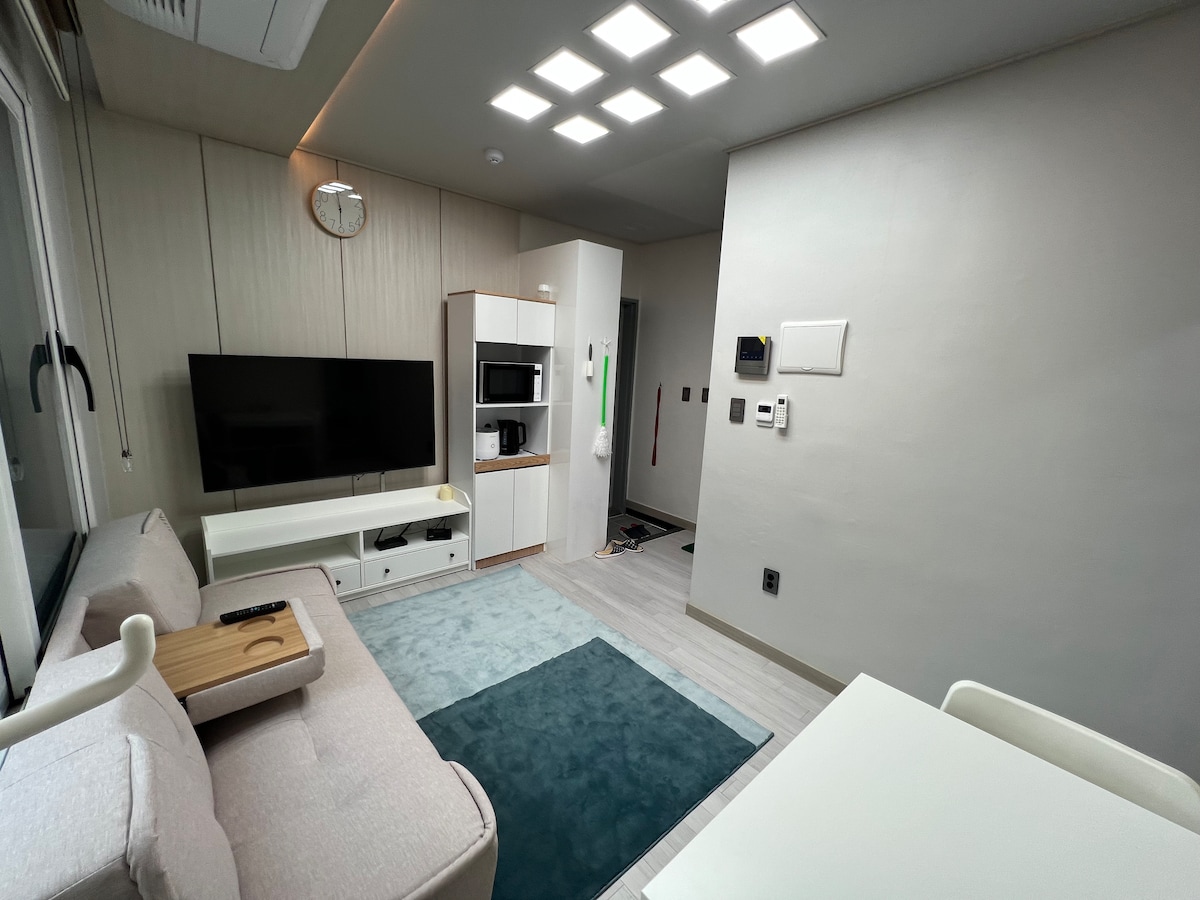 Na novo zgrajeno bivališče v 3 minutah od 2 postaj podzemne železnice *Recepcija, shramba za prtljago in salon za goste: B1F (na voljo je angleško in kitajsko govoreče osebje, postrežba zajtrka (plačljivo)) *namestitev za nekadilce. globa: 150.000 wonov. *Aparat za kavo in kapsula za dobrodošlico, bide , čistilnik pitne vode *Vse, kar potrebujete, tako kot doma. *2 gosta bosta uporabljala eno posteljo. Če vam je ljubše ločene postelje, pošljite zahtevo vnaprej. (plačano) *Za 3 ali več oseb bo raztegljiv kavč postavljen kot postelja.