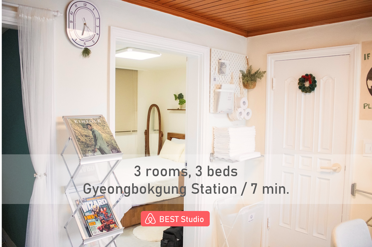 고급 독채/방4개/욕실2개/경복궁역 도보5분/호텔식 침구/평지/짐보관/세탁건조기/위치 최고