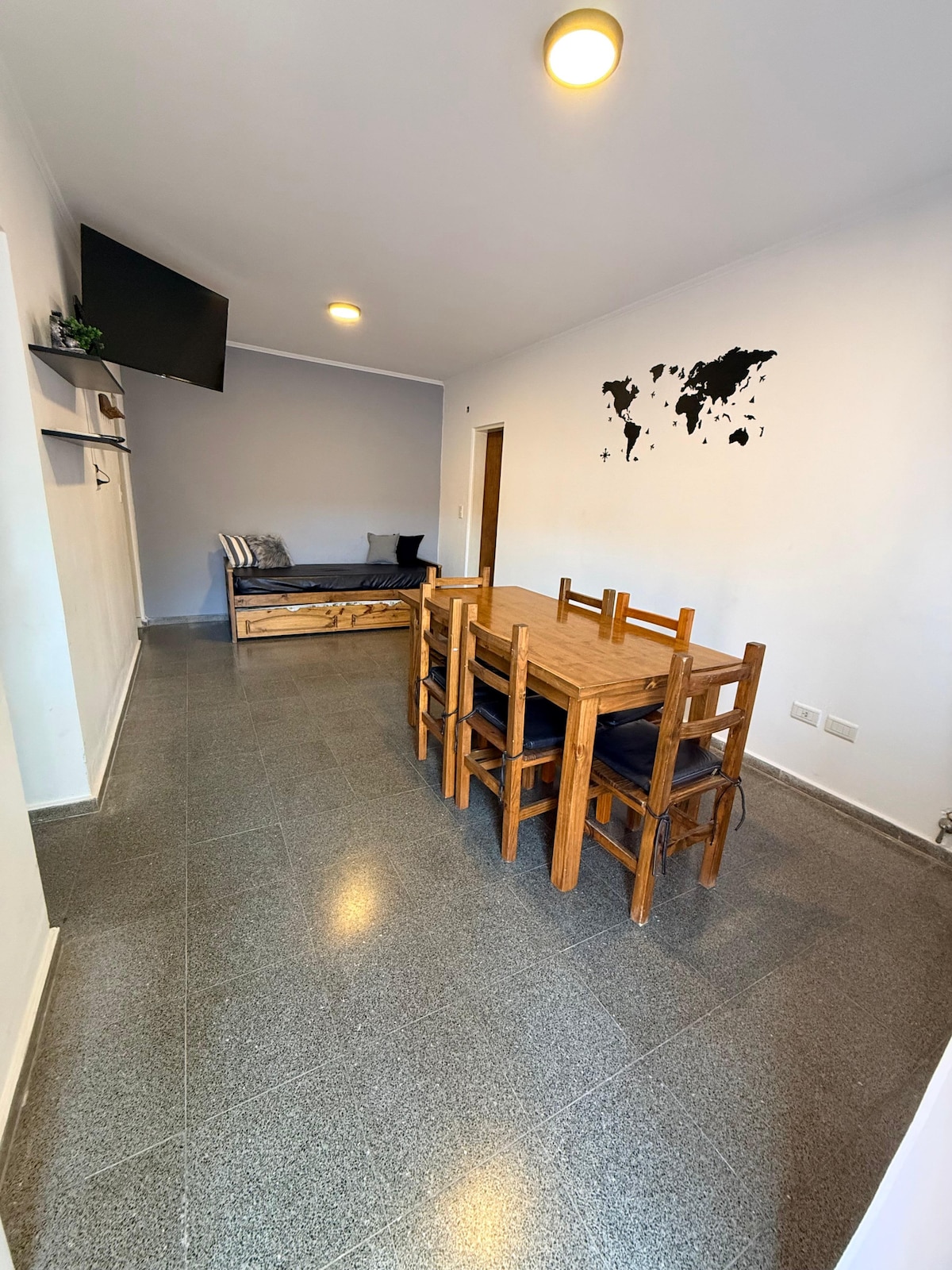 Departamento moderna a estrenar. Idealno za udobno in mirno bivanje. Dobrodošli v našem udobnem stanovanju v osrčju Santa Rose v La Pampi. Nahaja se 20 minut hoje od terminala Omnibus, v bližini nakupovalnega središča, supermarketov in drugih ključnih točk v mestu. 200 metrov stran je tudi zdravstveni center FAERAC. Predstavljena oprema: Wi-Fi Opremljena kuhinja Klimatska naprava in ogrevanje TV Dodatna oprema: Posteljnina Mikrovalovna pečica