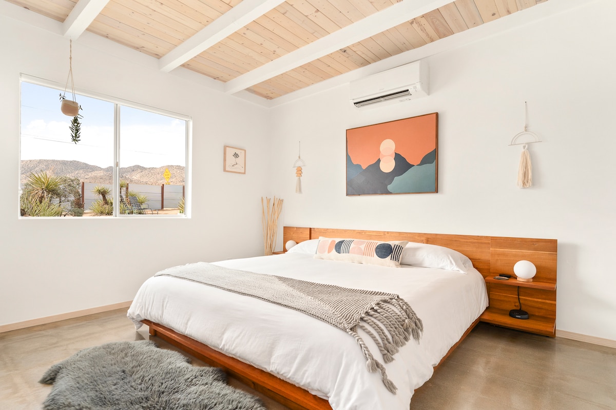 Koča Mockingbird je zatočišče za ljubitelje narave, ki leži ob pobočju hriba na 2,5 zasebnih hektarjih. Ta popolnoma prenovljen, svetlo napolnjen dragulj iz sredine stoletja ima visoke obokane strope, sistem filtrirane vode, profesionalno kuhinjo, zložljiva steklena vrata, ki se odpirajo za opazovanje ptic, teraso za jogo in masažno kad za opazovanje zvezd. To sanjsko skrivališče, ki se nahaja le streljaj od rezervata Big Morongo Canyon, ponuja sedež v prvi vrsti za več kot200 vrst ptic selivk ter zajcev, veveric in metuljev.