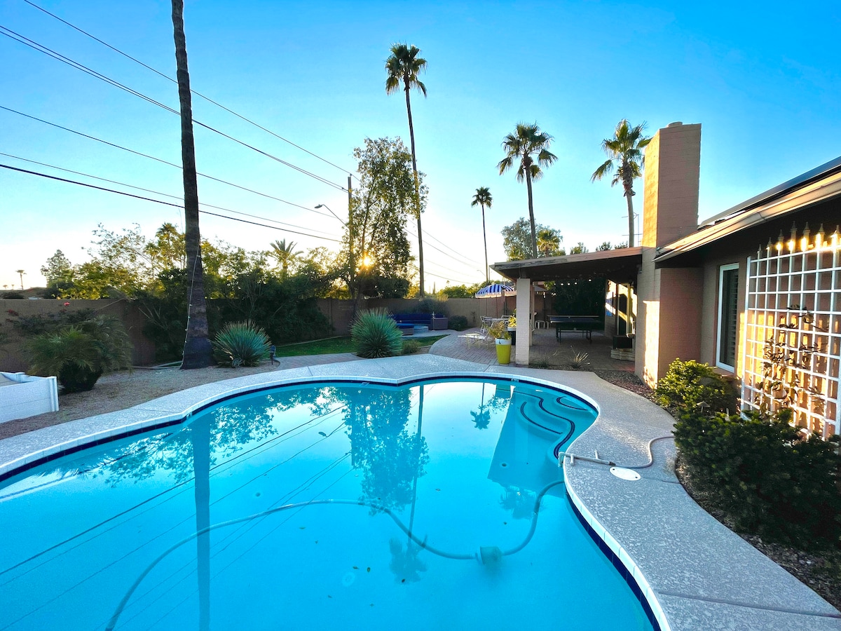 Potopite se v razkošje v tem enodružinskem prenočišču s super ZASEBNIM ogrevanim turkiznim bazenom, ki je kot nalašč za toplo polnočno plavanje. (Ogrevanje bazena je brezplačno). Hišni ljubljenčki bivajo brezplačno! To prenočišče ima elegantno mešanico kamna in zlata ter prostorno razporeditev prostorov odprtega tipa. Zabavajte se v slogu z veliko posodobljeno kuhinjo. Uživajte na žaru v mirnem zunanjem prostoru. Nahaja se v središču mesta in omogoča enostaven dostop do Scottsdalea, pohodniških poti in glavnih avtocest. Rezervirajte zdaj za izvrsten pobeg!