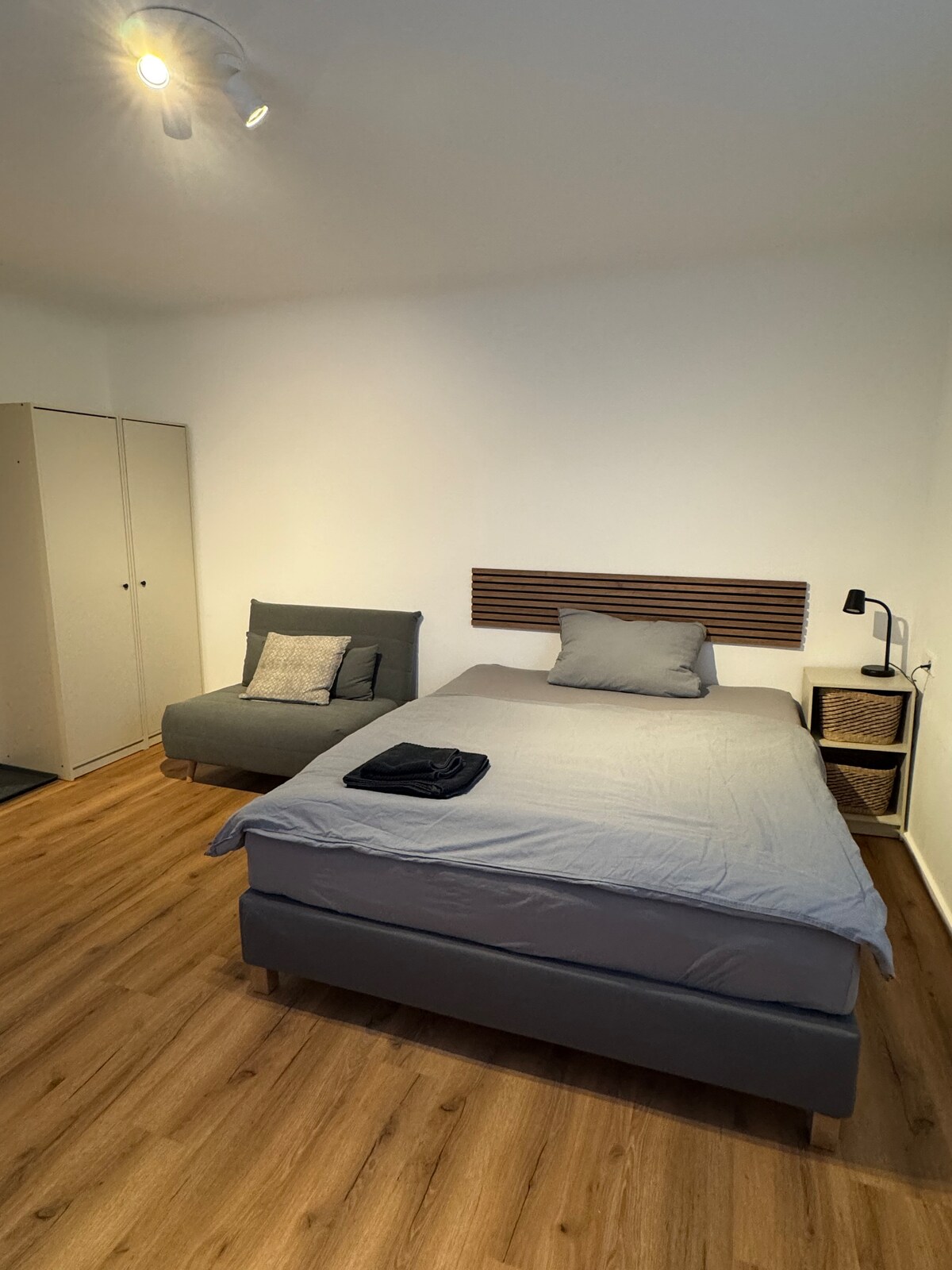 To svetlo, prijazno in sodobno opremljeno 2-sobno stanovanje v Kirchheim unter Teck ima novo opremljeno kuhinjo in dnevno svetlobo kopalnico (tuš+WC). Spalnica je opremljena z zakonsko posteljo , veliko omaro in mizo. V dnevni sobi je raztegljiv kavč, tako da lahko v njem spi še 1-2 osebe. Na čudoviti terasi zunanjega dvorišča lahko žarite ali uživate v soncu. Pranje perila lahko opravite v pralnici.