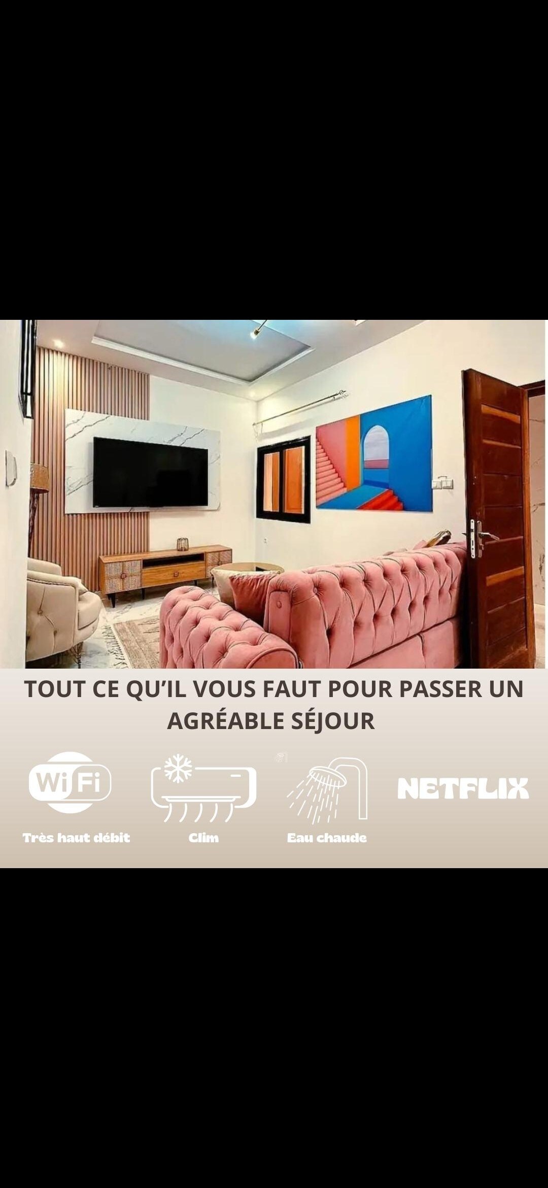 🌴 Spoštovani gostje! Dobrodošli v sodobnem stanovanju, ki je svetlo in oplemeniteno s senegalsko mojstrsko izdelavo🇸🇳. Uživajte v prefinjenem bivanju, udobni spalnici, popolnoma opremljeni kuhinji, hitrem Wi-Fi-ju, klimatski napravi ❄️ in 24-urni varnosti. Le streljaj od Pointe des Almadies in 100 m od Ngorjevega Golden Brioche🏖️. Rezidenca je prva mojstrovina podjetja Réalités Sénégal. Doživite edinstveno izkušnjo, kjer se v Dakru srečajo udobje, pristnost in toplo vzdušje🌞