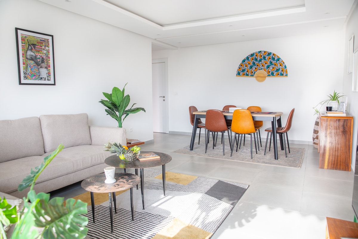 Udobno stanovanje v dnevni sobi s pogledom na laguno