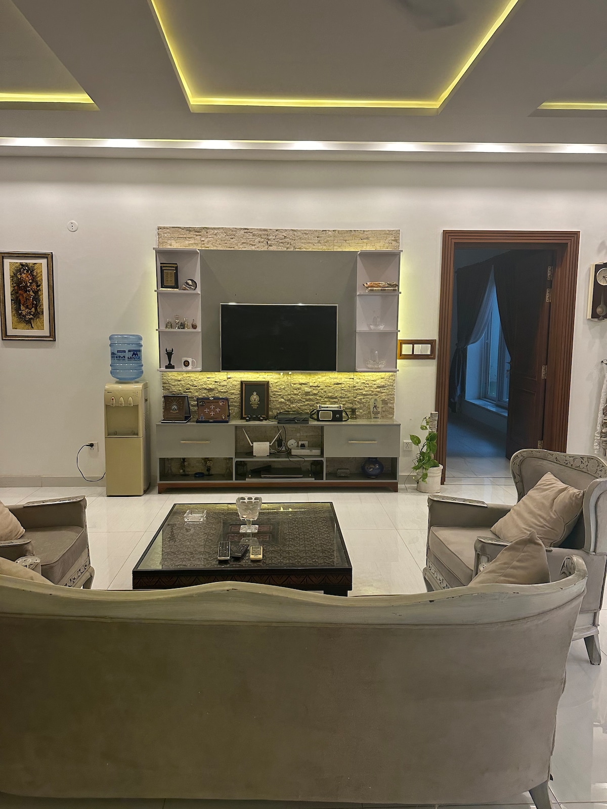 Unwind and indulge in a luxury retreat offered by ComfyCozy. This modern villa is located in a lush green Bahria Enclave Islamabad . While much of the entertainment can be found within Bahria Enclave, (Birds Aviary/ Zoo) you’re just a 10 minute drive from dancing fountains @ Park View Society, the vibrant Food Valley and Rawal lake adding even more excitement to your stay. Grocery is delivered at the doorstep adding convenience. You can also get access to GYM on special discounted rates