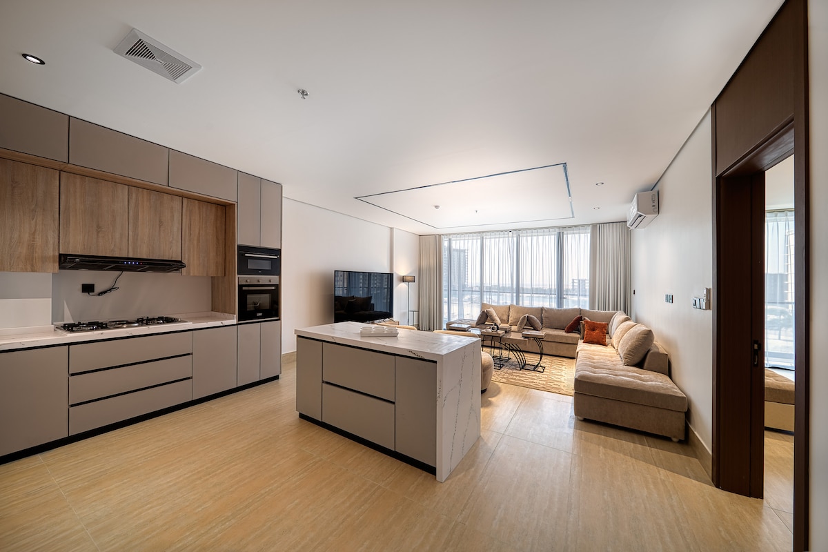 شقة راقية بتصميم عصري أنيق، تضم 3 غرف نوم وشرفة خاصة واسعة بإطلالة بحرية مفتوحة، مثالية لجلسات هادئة في أجواء من الخصوصية والراحة. تتميز بمساحات رحبة، غرفة معيشة أنيقة، مطبخ مجهز بالكامل، وغرفة غسيل تضم غسالة ومجفف. يتوفر اتصال إنترنت عالي السرعة، تلفزيون ذكي، نظام تنقية هواء، وخدمة تنظيف يومية لضمان إقامة مريحة بمعايير ضيافة راقية. خيار مثالي لمن يقدّر المساحة، الإطلالة البحرية، والهدوء. رقم التسجيل: 50039395