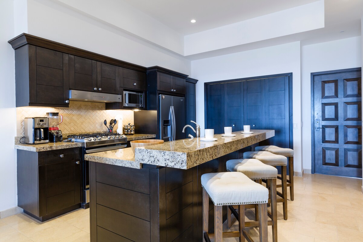 Experience a luxurious new 2 bedroom, 2 bath ground floor condo with panoramic views of the Pacific Ocean. Located within Los Cabo’s exclusive gated master planned community of Copala at Quivira, this condo offers an ocean view and numerous resort amenities. Amenities include an exercise gym, pool within steps of your patio, a market, cinema room and a $5 shuttle service throughout the Pueblo Bonito Sunset community. We provide concierge service to ensure you make the most of your vacation.