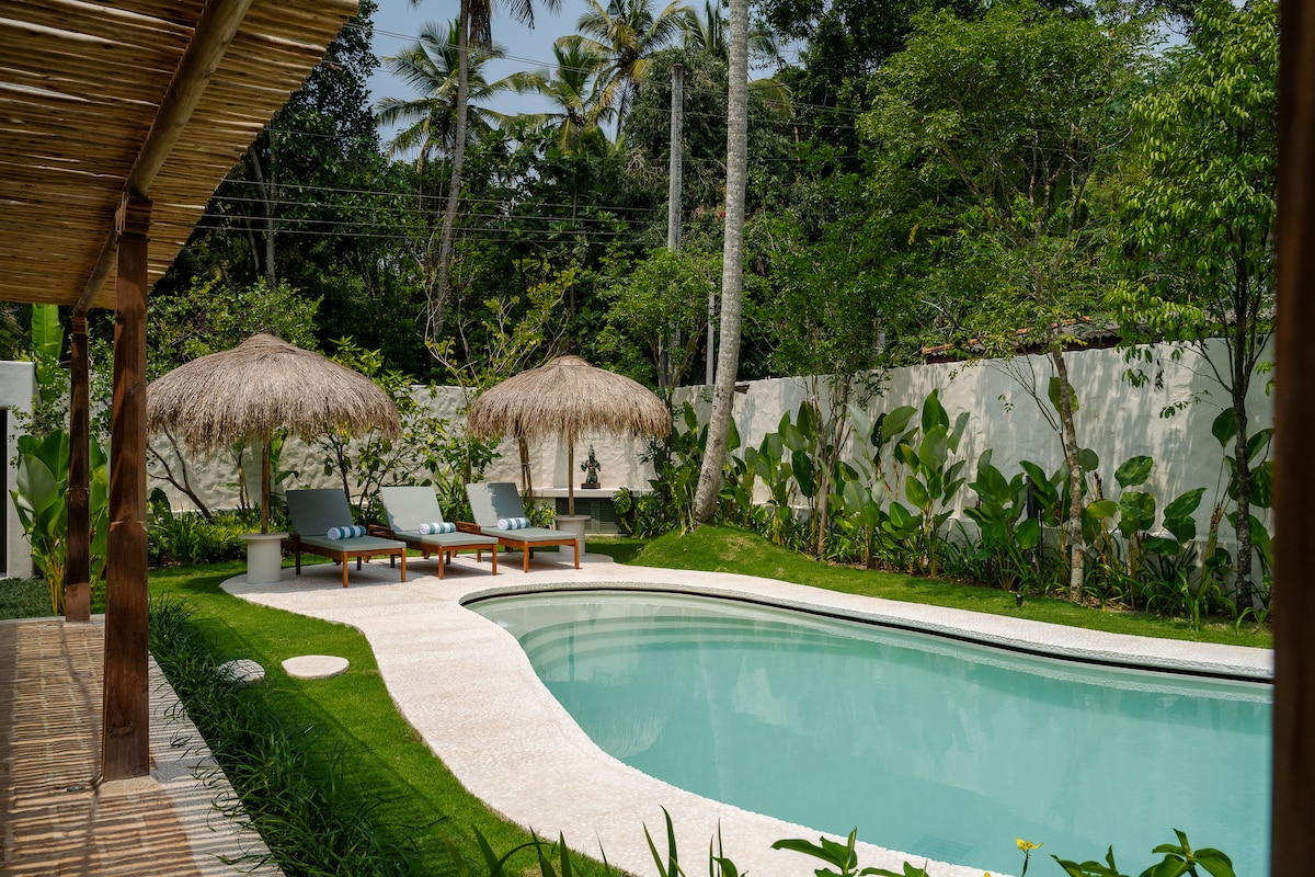 Očarljiva butična dvosobna vila, ki se nahaja v bujnem tropskem raju Hiriketiye, ponuja popolno mešanico udobja in miru. Ta vila se nahaja le 9 minut hoje od živahne plaže Hiriketiya in 10 minut hoje do mirne plaže Pehembiya ter je idealno izhodišče za raziskovanje neokrnjene obale tega območja. Vrhunec namestitve je zasebni potopni bazen z dvema vodnima curkoma, obdanim z bujnim zelenjem, kjer se lahko po celodnevnem raziskovanju ohladite in se sprostite.