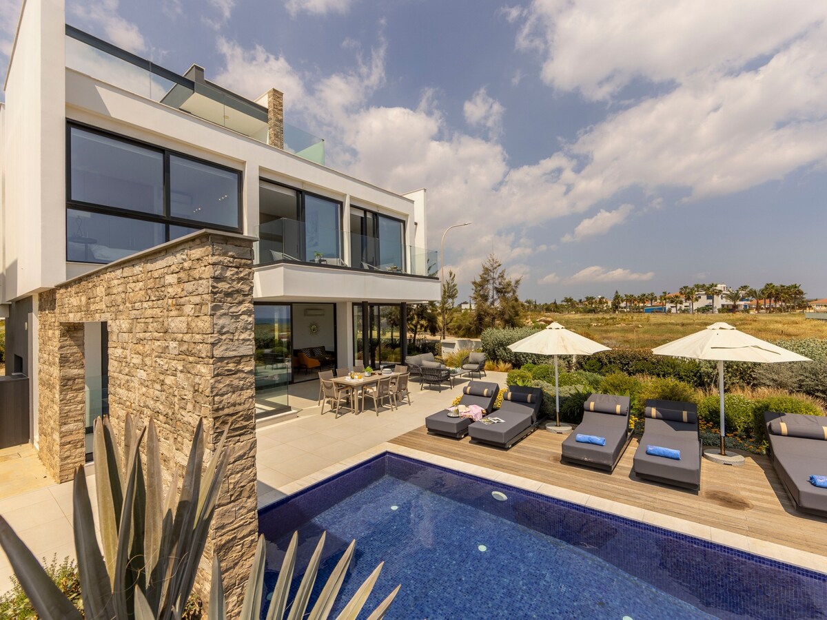 Sprostite se v naši mirni, tiho razkošni hiši na plaži v družbi vaših najljubših ljudi. Uživajte v sredozemskih sončnih zahodih ob bazenu ali med kopanjem... in le 2 minuti hoje stran se nahaja plaža Serena Bay s svojim mirnim, čistim morjem in nagrajenim barom in restavracijo na plaži.