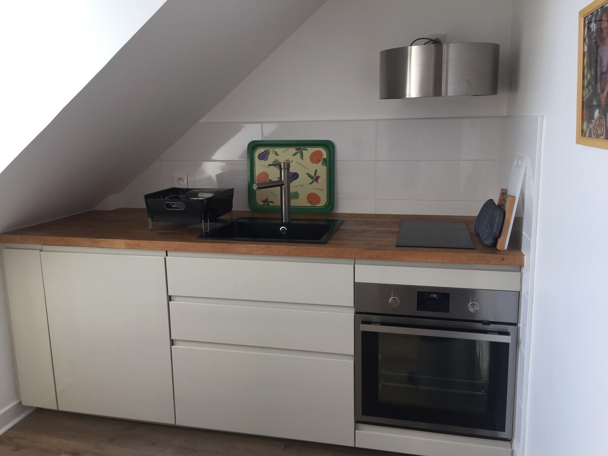 Udobno in očarljivo stanovanje (43 m2) na južni strani v prvem nadstropju obnovljene hiše v Dinardu, ki se nahaja na mirni ulici 400 m od plaže, trgovin in tržnice, ki so dosegljive peš. Kuhinja in dnevna soba v slogu podstrešja, 1 spalnica + 1 spalni prostor v medetaži, kopalnica, brezplačen Wi-Fi, brezplačno parkiranje na ulici. Za bivanja, krajša od 7 dni, je na voljo možnost posteljnine (10 €/1 zakonska postelja). Možnost standardnega čiščenja ob koncu bivanja: (lahko si jo ogledate na kraju samem ob vaši dobrodošlici).
