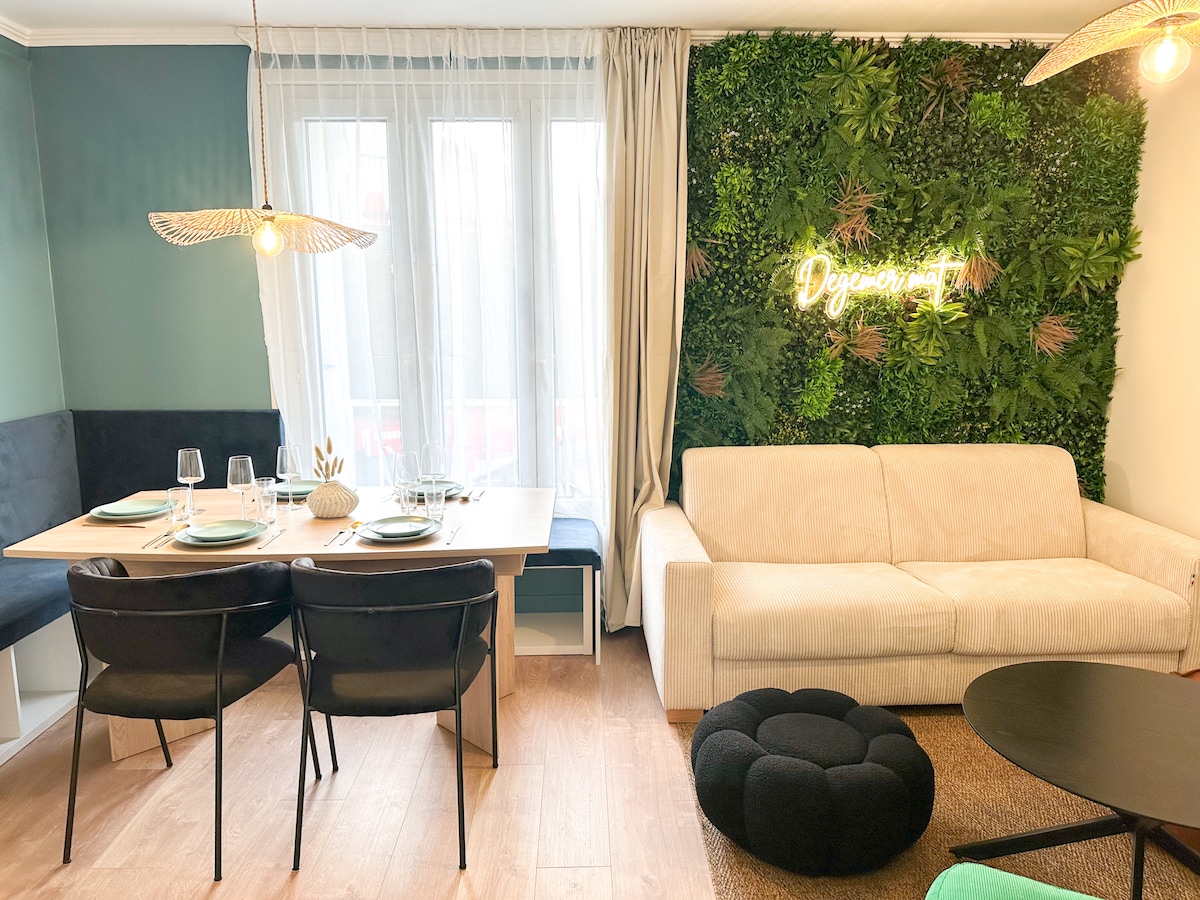 Popolnoma neodvisno bivališče z Wi-Fi-jem velikosti 45 m² s teraso in zasebnim vhodom (ključavnica s tipkovnico), za katerega smo si vzeli čas, da smo se skrbno dogovorili za vašo dobrodošlico. Nahaja se v središču mesta v bližini železniške postaje in fundacije E Leclerc, kjer boste lahko v celoti uživali v trgovinah: pekarna, restavracijah, kinu, križišču mesta...
