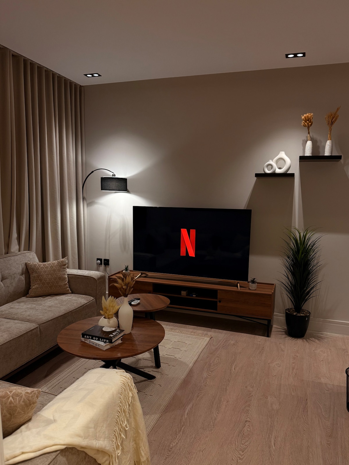 Luxury 1BR Apt , 65” 4K TV | Self Entry
