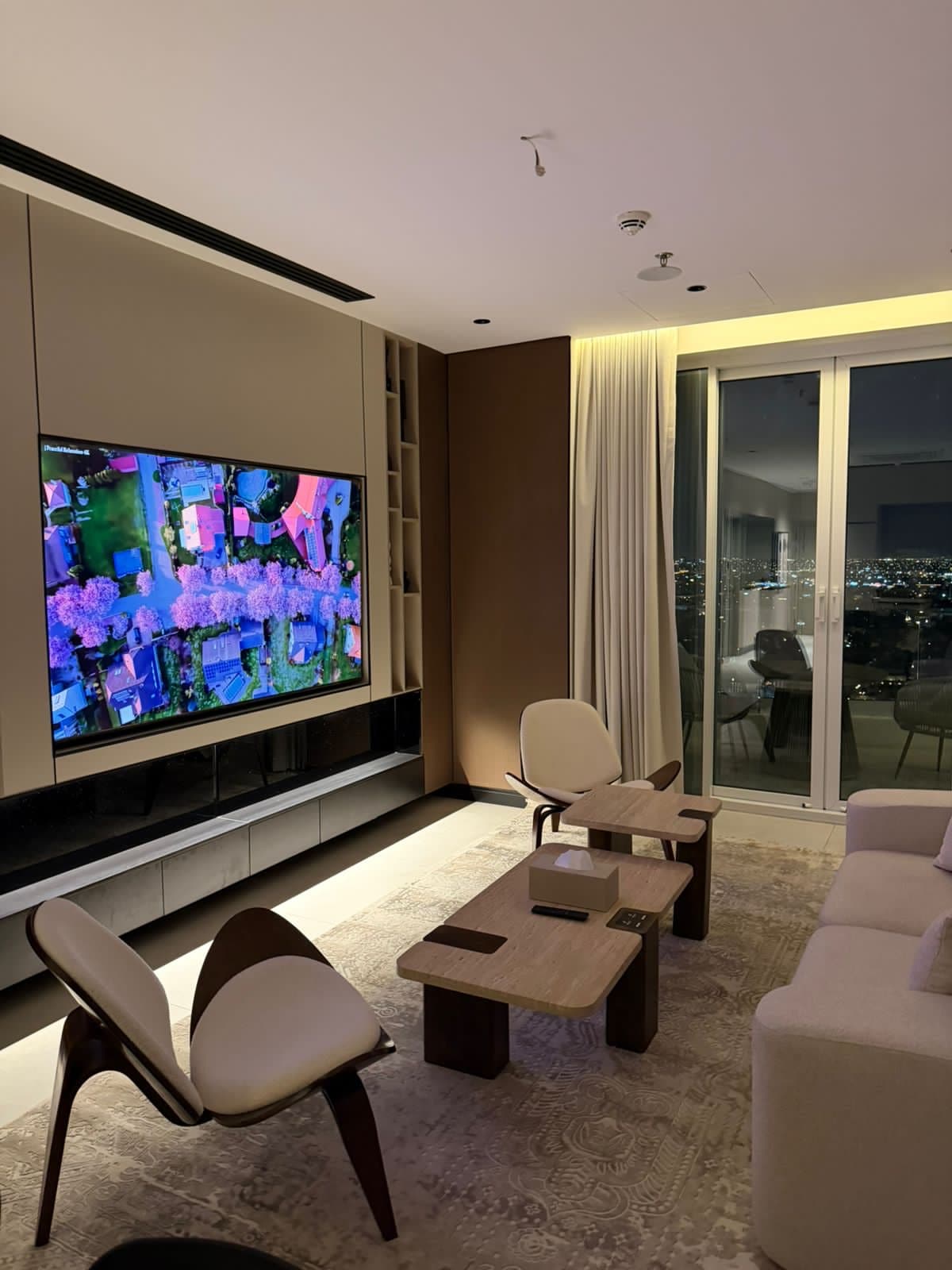 Stanovanje v Burj Rafalu (lastniška rezidenca), več kot 50 nadstropij, severni razgled, za tiste, ki iščejo mirno in prepoznavno nastanitev, v bližini najvidnejših znamenitosti Rijada. Popolnoma opremljen, zasnovan in opremljen z razkošnim osebnim pohištvom; vključuje spalnico z glavno posteljo, kuhinjo, (2) kopalnico. Kinematografska razsvetljava, pralni stroj, aparat za kavo, 75-palčni televizor in velik zaslon v spalnici, filter za čiščenje zraka, kuhinjsko orodje za bivanje v popolnem udobju.