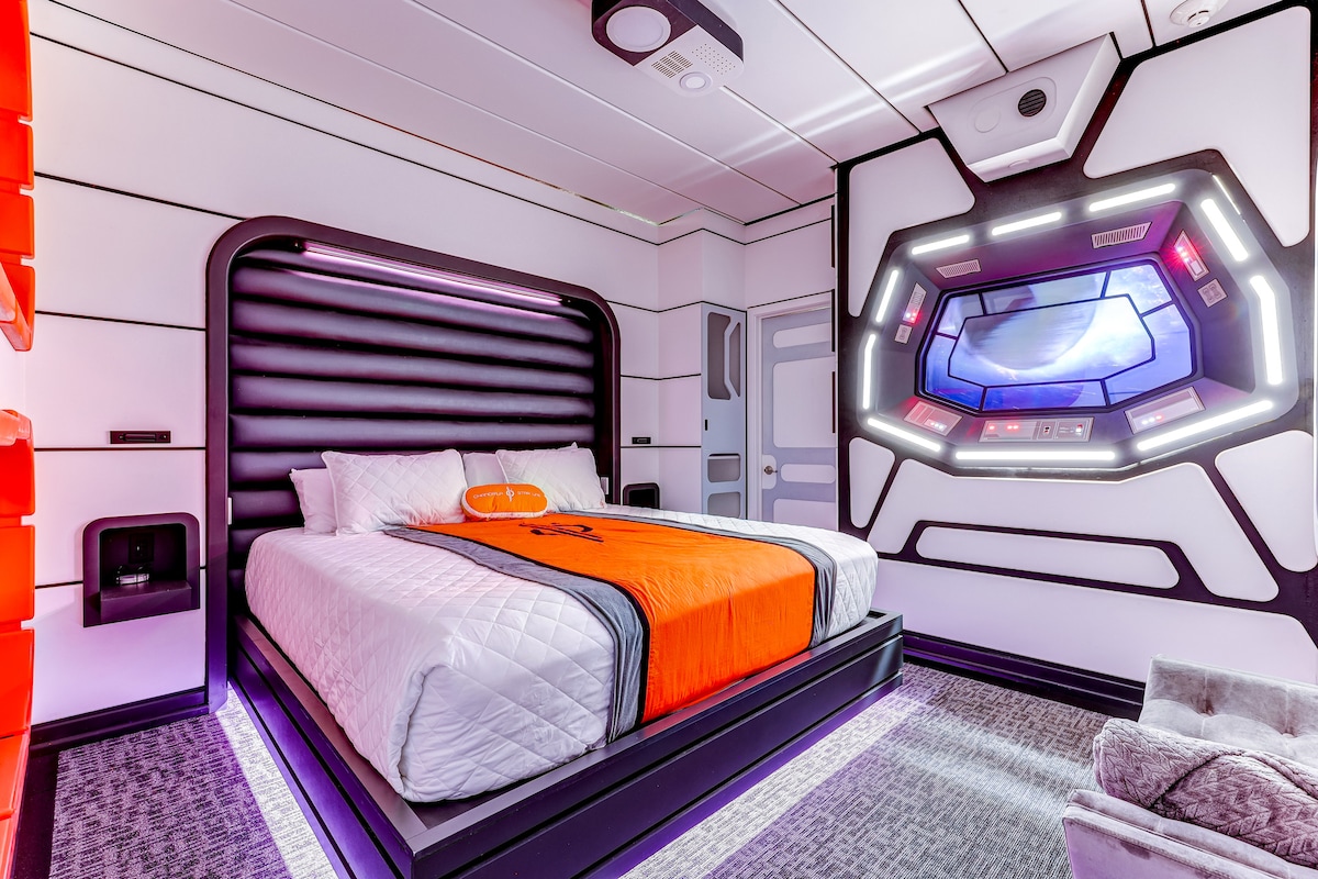 Pobegnite na nepozabno Disneyjevo pustolovščino, le 15 km od Walt Disney Worlda! Idealno za ljubitelje Mario Bros, Moana in Princess Peach. Uživajte v tematskih sobah, udobni posteljnini in zasebnem bazenu. Uživajte v filmskih večerih v našem gledališču Mario Bros! S seboj pripeljite vso družino, vključno s hišnimi ljubljenčki, in ustvarite čarobne spomine. 15 km do Walt Disney Worlda 🎢 16 milj do Sea Worlda 19 milj do Universal 27 milj do MCO (mednarodno letališče Orlando) Pridružite se nam na nepozabni Disneyjevi pustolovščini. Več o tem najdete spodaj.