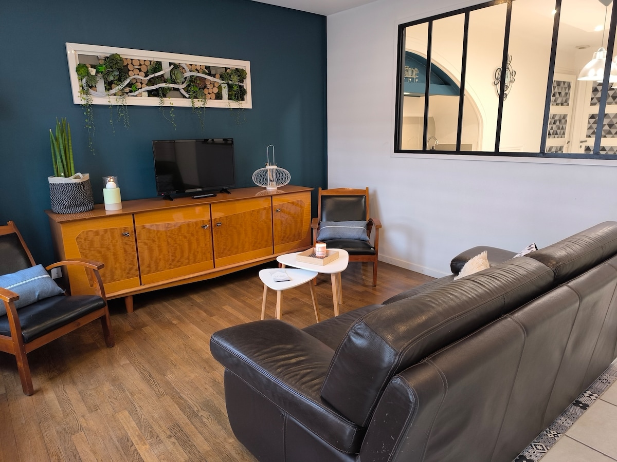 V celoti prenovljena vrstna hiša v velikosti 85 m2 s skandinavsko dekoracijo, idealna za največ 6 oseb. Vključuje 2 prostorni spalnici, udobno dnevno sobo, popolnoma opremljeno kuhinjo in (neogrevano) nadstrešek. Nahaja se 10 minut neposredno od Futuroskopa, 2 km od parka Parc de Loisirs de Saint-Cyr med Poitiersom in Châtelleraultom. Uživajte v enostavnem dostopu do lokalnih trgovin, prevoza in znamenitosti. Odlično za bivanje, ki združuje udobje in odkritje.