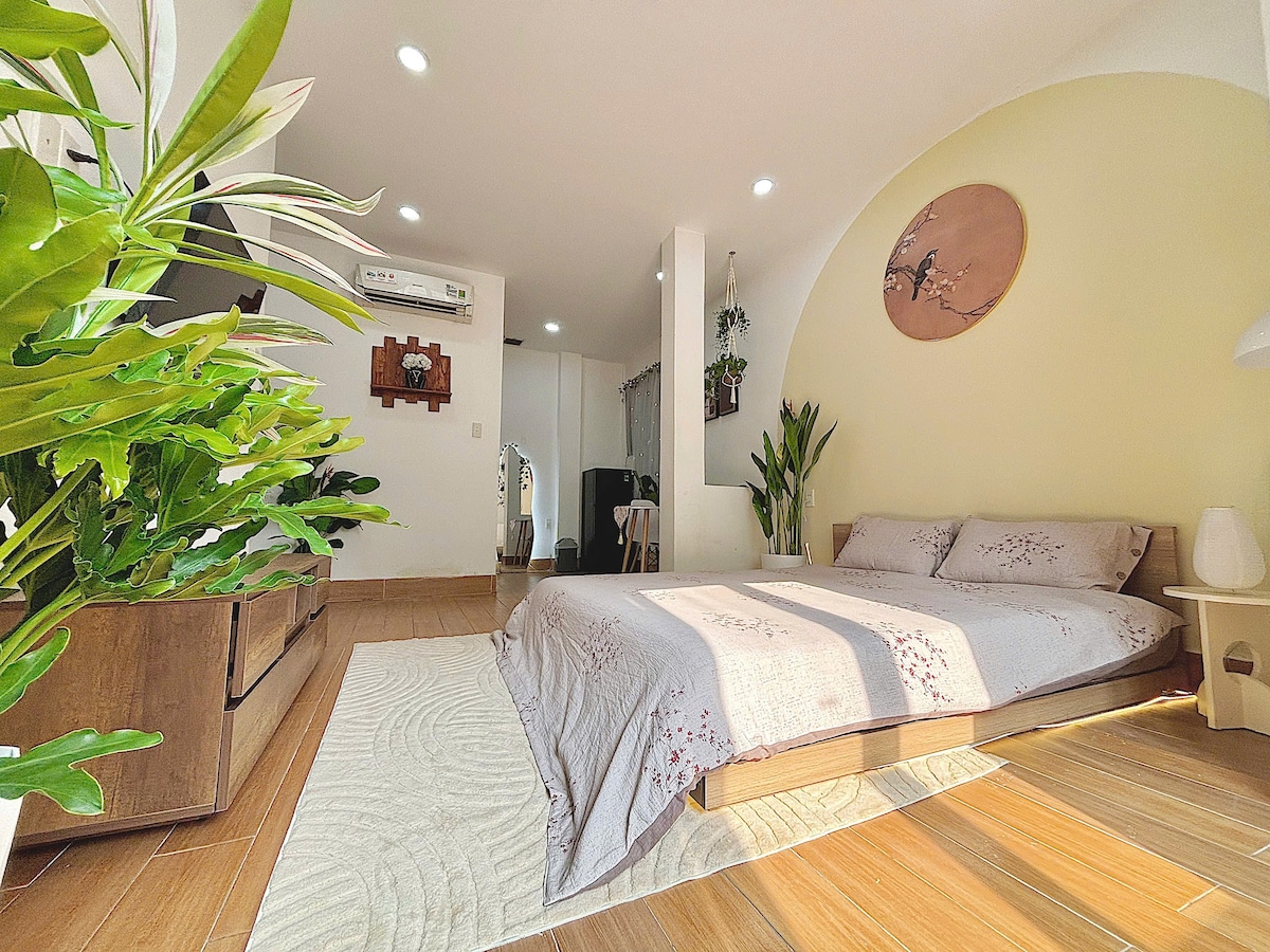 The Studio in the heart of District 3, just minutes from Ho Chi Minh City’s iconic spots, this modern, fully equipped apartment blends comfort with prime location. Floor-to-ceiling windows capture the city’s vibrant street life — the pulse that makes Vietnam unforgettable. The space is warm, stylish, and designed for true relaxation. Above it all, a green rooftop oasis offers a calm escape, perfect for morning coffee, fresh air, and sunset views.