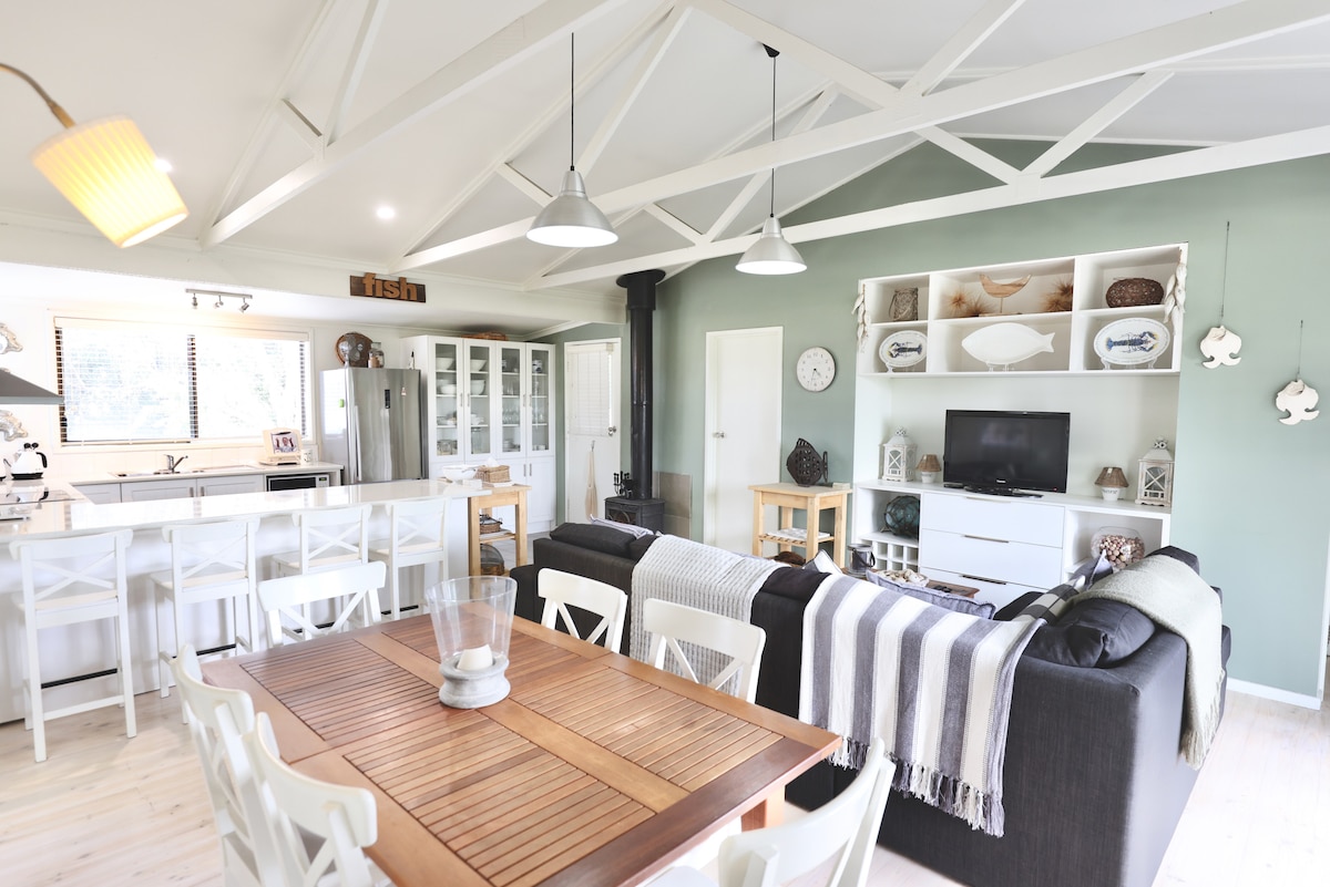 Dobrodošli v The Woodshed - vaše razkošno obalno zatočišče Ta očarljiva hiška na plaži, ki se nahaja vzdolž mirne obale, ponuja miren oddih, ki ga navdihuje brezčasna eleganca skandinavskega oblikovanja. Po obsežnih potovanjih po slikovitih pokrajinah Skandinavije so bili lastniki očarani nad toplimi, minimalističnimi prenočišči v nordijskem slogu. S skupno vizijo so se odločili, da svojo skromno družinsko kolibo na plaži spremenijo v udobno in elegantno zatočišče ob morju.