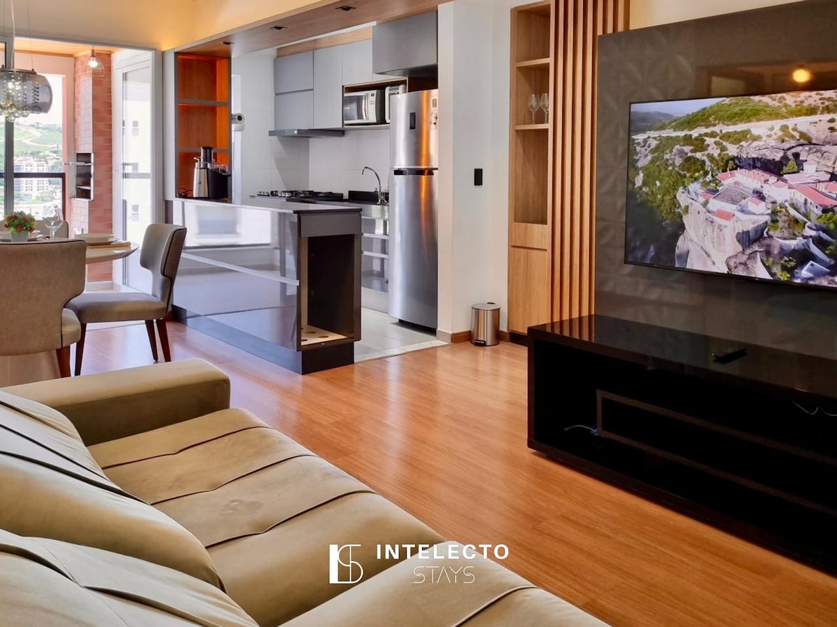 Obrigado por considerar nosso apto para sua estadia! Aqui, você terá todo o conforto e limpeza numa localização privilegiada no centro de Poços de Caldas. O apto é novo, possui internet de alta velocidade, cama de casal e um sofá cama, sendo assim capaz de acomodar até quatro adultos. Sob demanda, também temos disponível berço e cadeirão. O edifício possui sala de cinema, lavanderia, área gourmet, academia e uma vaga de garagem coberta por apto! Faremos da sua estadia uma experiência única!