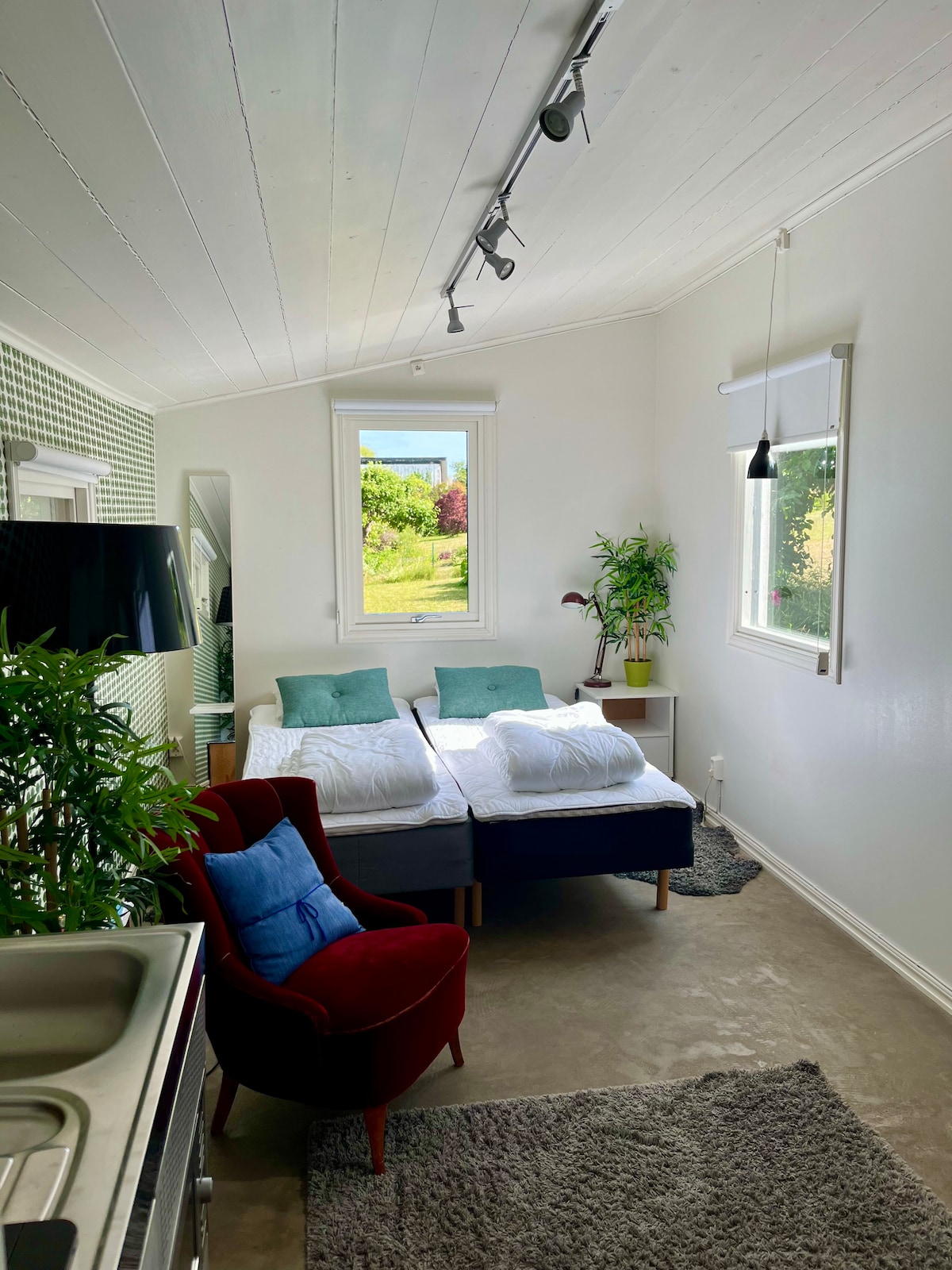To je novo zgrajena majhna hiša za goste, ki gradi leto 2017. Hiša meri 25 kvadratnih metrov in ima spalno predelano stanovanje. En raztegljiv kavč, 140-200. Dve postelji v predelanem stanovanju, vsaka 90-200. Popolnoma opremljen kuhinjski del. Kopalnica, prha in WC. Hiša se nahaja ob glavni stavbi, kjer živi par gostiteljev. Do središča Västervika je 2 km. Blizu igrišča za golf Västerviks, 200 metrov. Do Gamlebyvikena 700-800 metrov in prav tako daleč do Gudingena, Baltskega morja.