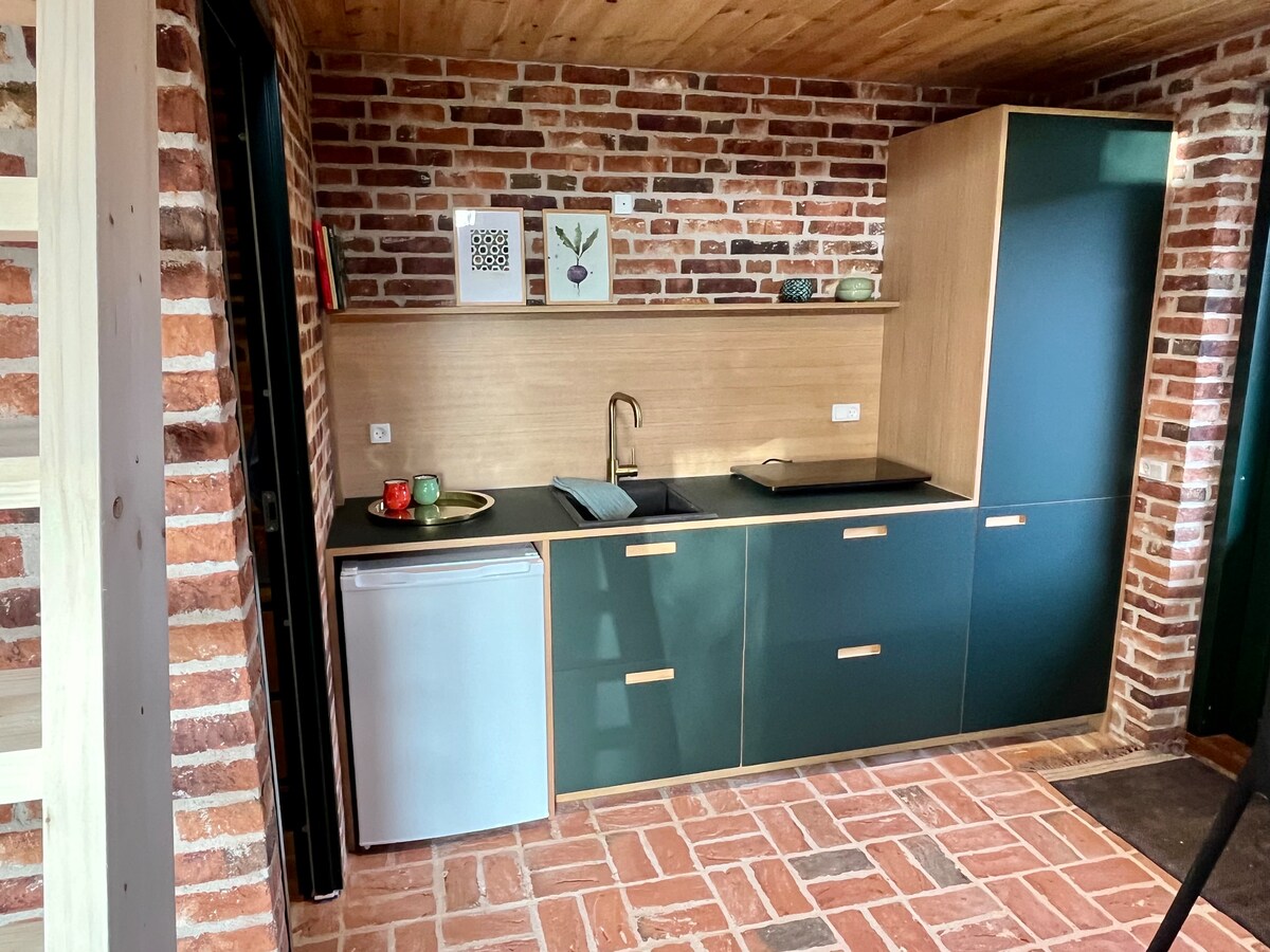 30 m2 udobna prizidka, ki se nahaja čudovito navzdol do jezera Ollerup. Zgrajena je bila leta 2022 s surovimi opečnimi stenami in lesenimi stropi, ki zagotavljajo zelo posebno vzdušje. Najbolj primeren za dve osebi ali majhno družino. 140 x 200 cm postelja v dnevni sobi in podstrešje z možnostjo dveh dodatnih nočitev. (2 enojni vzmetnici) Ni višina na podstrešju. Na voljo so zasebni vhod, lesena terasa in dostop do jezera Ollerup. Prihod od 16.00 dalje Odhod do 12.00 Vprašajte, če časi ne delujejo.