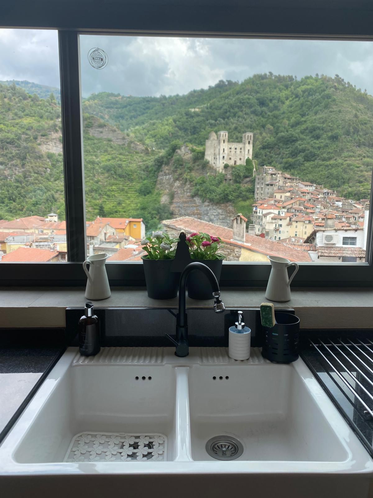 Popolnoma prenovljeno stanovanje se nahaja v srednjeveškem središču Dolceacqua. Neposredno obkroženo z več udobnimi restavracijami in potrebnimi objekti. Ta zgodovinska vas je oddaljena 20 minut vožnje od Sredozemskega morja, obkrožena z gorami in blizu mest, kot so San Remo, Ventimiglia, Monako . Letališče v Nici je oddaljeno 50 minut vožnje. Do hiše s sončnim balkonom v 3. nadstropju lahko pridete po stopnicah, brez dvigala. Parkiranje v vasi ni plačano in plačljivo.
