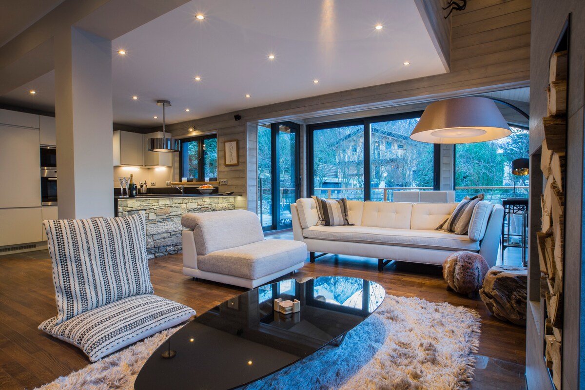 This luxurious chalet of 280m2 and 1740m2 of land is located in the popular village of Les Praz, only 2km from the center of Chamonix. The quietness of its environment, with it's southern exposure as well as the view of the Mont Blanc and on the Drus. The recent renovation guarantees a comfortable stay that meets the expectations of the most demanding travelers, notably via its cinema and sports room, as well as the outdoor sauna.