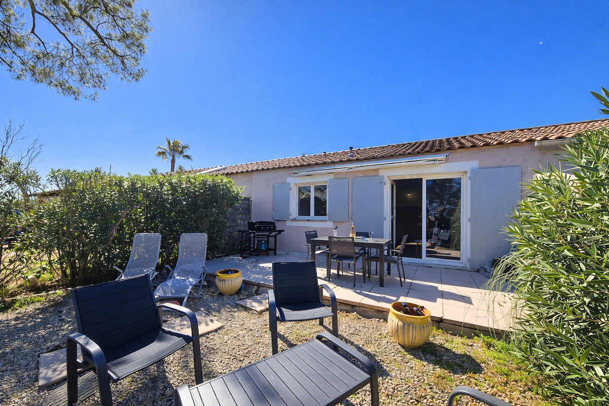 Čudovita počitniška hiša za največ 6 do 8 oseb, ki se nahaja v zelo mirnem kraju Domaine du Golf de Roquebrune-sur-Argens (zasebno in varno posestvo). Čudovit razgled na vso okolico. Velik skupni bazen z ležalniki in senčniki (od 1. do 31. oktobra), igrišča za tenis in pétanque. Zaradi vodnega parka, navtične baze in bližnje zabave je ta hiša idealen kraj za sproščujoče bivanje za vso družino. Fréjus in Sainte-Maxime sta oddaljena 15 minut. Plaža in morje sta oddaljena 10 minut.