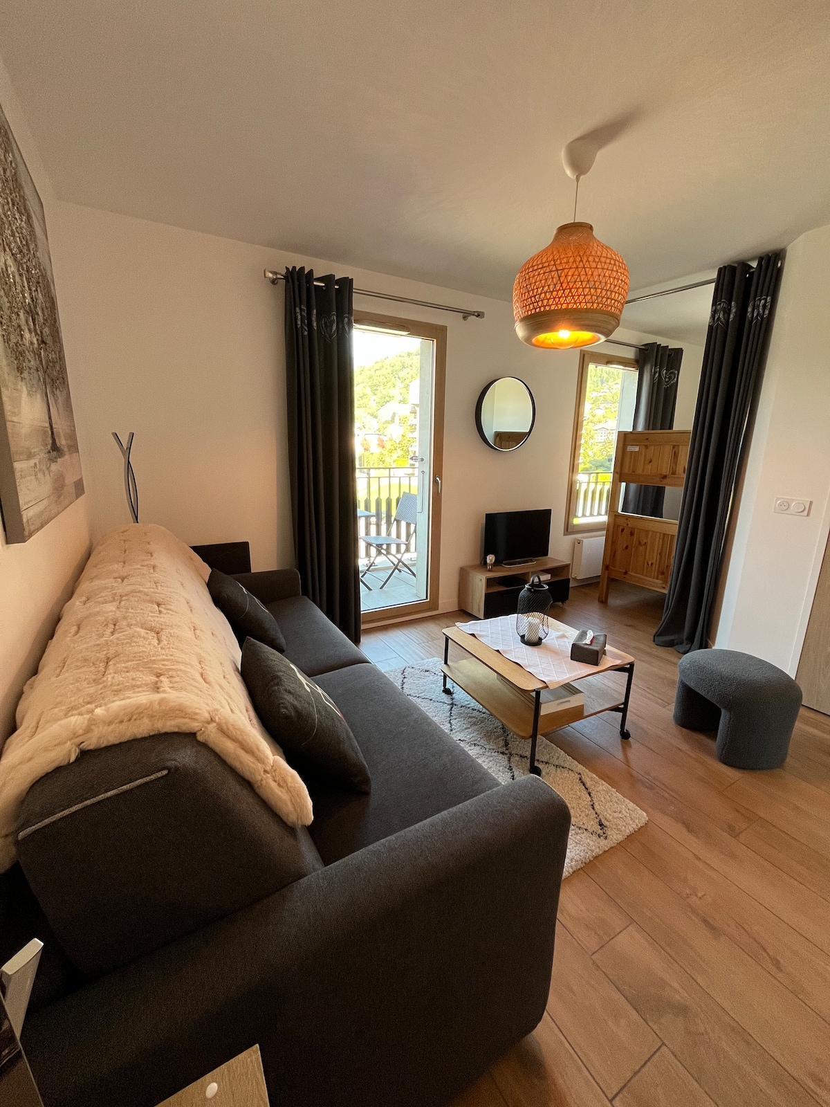 Veseli nas, da vas lahko sprejmemo v našem čudovitem stanovanju v velikosti 29 m2 z naravnim in kokonamnim dizajnom. Nahaja se v središču mesta St Gervais v zelo mirni rezidenci z dvigalom. Le streljaj od tramvaja Mont Blanc v bližini Chamonixa, Megèveja, Annecyja, Italije in Švice. Stanovanje je popolnoma opremljeno, mikrovalovna pečica, pečica, pralni stroj, aparat za kavo,TV... Ima balkon, pokrito in zaprto garažo v rezidenci, smučarsko in kolesarsko sobo.
