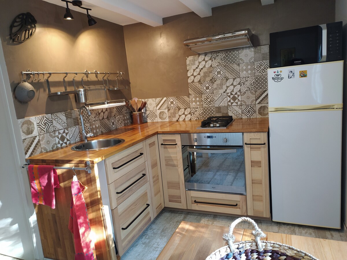 Majhno novo PREDELANO STANOVANJE v industrijskem in sodobnem slogu s površino 40 m2 za 2 osebi (vendar možnost spanja 1 otroka na dodatnem kavču). To predelano stanovanje se nahaja na vinskem posestvu v osrčju vinogradov. Pritrjena je na podeželsko hišo lastnikov, vendar je popolnoma neodvisna. Vhod je severno od Bastida. Dostop do bazena lastnikov (od 1. julija do 15. 9.) in igrišča za hišne ljubljenčke vsak dan od 10. do 18. ure. Na dan vašega prihoda je bazen dostopen do 19.00.