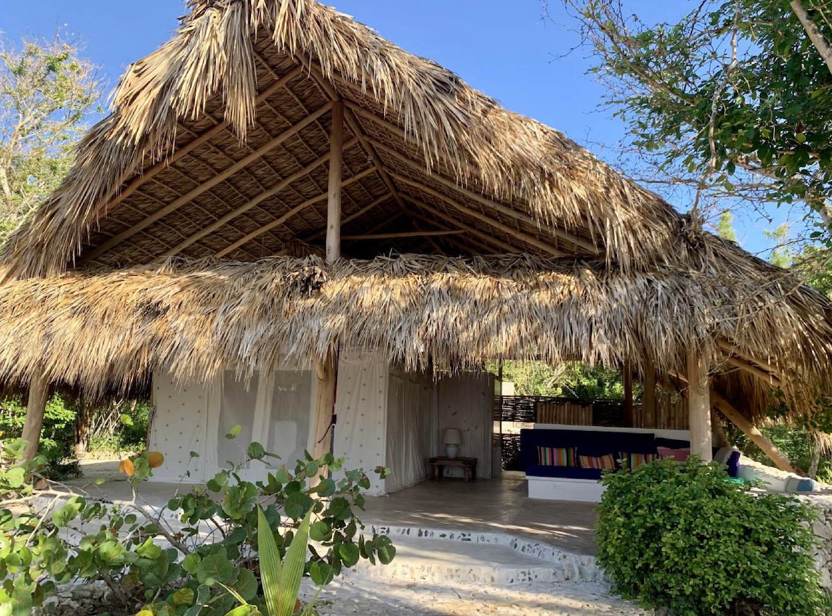 Embrace barefoot luxury in this 80m² open-air retreat overlooking the Caribbean Sea. Our Oceanfront Glamping features a tented queen bedroom, a private terrace, and a secluded outdoor bathroom for a fully immersive nature experience. this space offers simplicity, serenity, and a deep connection to the elements—perfect for those seeking peaceful seclusion and coastal beauty. 1 Queen bed * 80m² open-air floor plan Tented bedroom with outdoor terrace * Private outdoor bathroom * Private terrace
