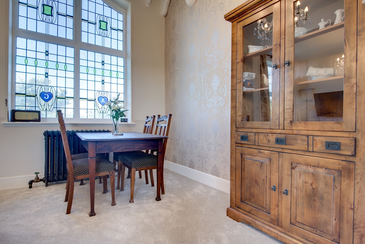 3 bed apartment in the old Carnegie Library. Beautifully decorated and very comfortable having quality beds and for a good nights sleep. Fully fitted kitchen, en suite bedroom, family bathroom. Ideal for visiting family and friends and interesting places. The train station is just a 5 minute walk getting you to Sheffield in 20 minutes. Please note you are coming to an old pottery village so while Swinton is not a holiday area , it is central to many interesting places around.