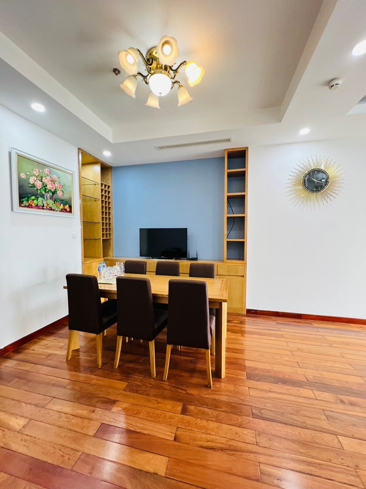 Dobrodošli v dvosobnem stanovanju v Royal Cityju, ki ponuja udoben in prijeten bivalni prostor s čudovitim razgledom na osrednji trg in bazen, le nekaj korakov od nakupovalnega središča Vincom Mega Mall Royal City. Stanovanje je v celoti opremljeno s sodobno opremo ter ima prefinjen in urejen dizajn, ki ustvarja udoben in prijeten občutek domačnosti. To je idealna izbira za kratka ali daljša bivanja, ne glede na to, ali potujete, delate ali pa se sproščate z družino.