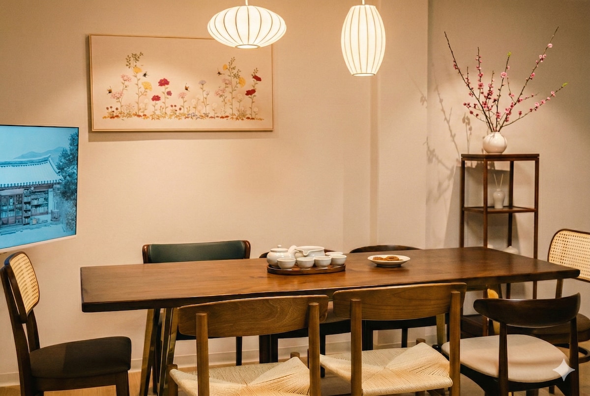 🍵 Delight Tea House – Where Time Softens Pozdravljeni, sem Rachel in Rio, vaša gostitelja. Delight Tea House je prostor, ki prežema mirno toplino in udobje središča Seula. To bivališče je tradicionalno korejsko estetiko rešilo s sodobno občutljivostjo. To je kraj, ki počasi razbremeni napetost vsakdanjika z mirno glasbo, subtilnimi aromami in toplo osvetlitvijo. Na potovanjih v več kot 20 državah smo to spoznali. Dobro potovanje ni samo potovanje, ampak počitek, kjer ostane srce. Mešanica vrtov, kamnitih sten in bambusa. Delite vročo skodelico čaja s svojimi najdražjimi in v celoti uživajte v počasnem teku.