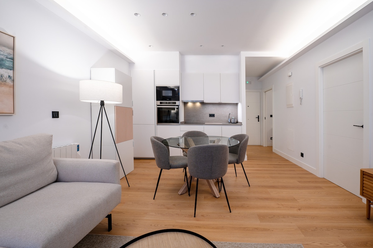 Novo enosobno stanovanje z zakonsko posteljo in raztegljivim kavčem (144x180 cm) se nahaja v osrčju soseske Gros, 1 minuto hoje do središča mesta. Brezhibno na novo prenovljeno klimatsko napravo, 55-palčno televizijo, Wi-Fi, Nesspreso. Popolnoma opremljen za otroke in dojenčke. Popolnoma se nahaja 2 minuti od avtobusne in železniške postaje ter poleg neposredne avtobusne postaje do letališča San Sebastian.
