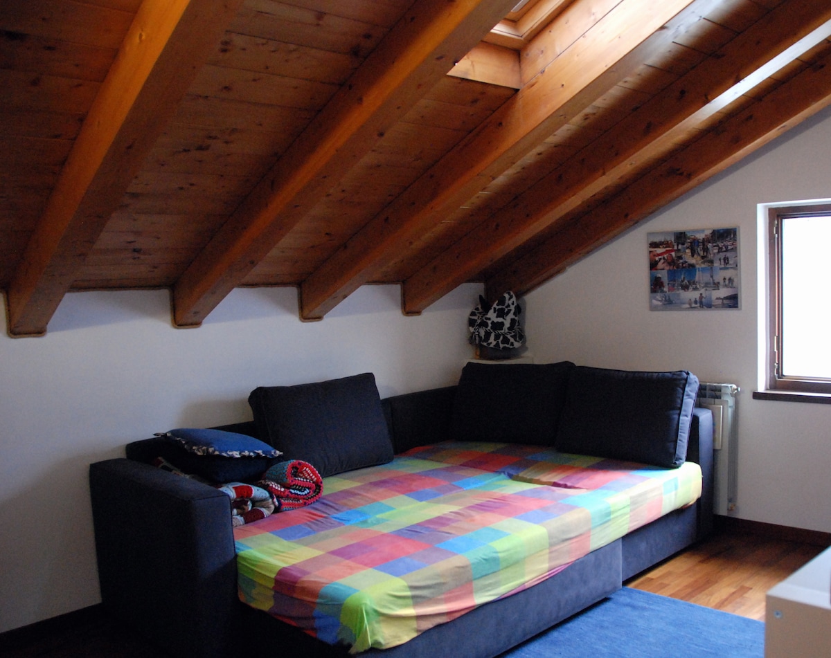 Lovely attic, recently renovated, consists of a kitchenette and refrigerator, with the possibility to cook and eat, a sitting area with sofa, TV, DVD player and a large collection of movies, Wi-Fi, double bed, private facilities with sink, shower and washing machine. Two large windows that open transom makes the room very bright, with the possibility to look out to enjoy the beautiful surrounding landscape. The accommodation is well insulated and is not bothered by outside noise, great for relaxing in peace. Parking Private parking near the entrance. The accommodation is situated in the center of Dervio, the train station is 100 meters, exit SS36 Milano-Lecco-500m Valtellina, a supermarket, a bank and pharmacy 50mt, 300mt to the beach. Opportunity to hike in the mountains without the use of means of transport, school of surfing, sailing, kite surfing, boat trips. The city of Lecco is located 30km, 80km Milan, Como, 50km, 40km to the border with Switzerland, Menaggio, Bellagio, Varenna can be reached easily by ferry or hydrofoil. In winter, the ski resorts of the Valtellina (Madesimo, Bormio, Chiesa Valmalenco) are less than an hour's drive.
